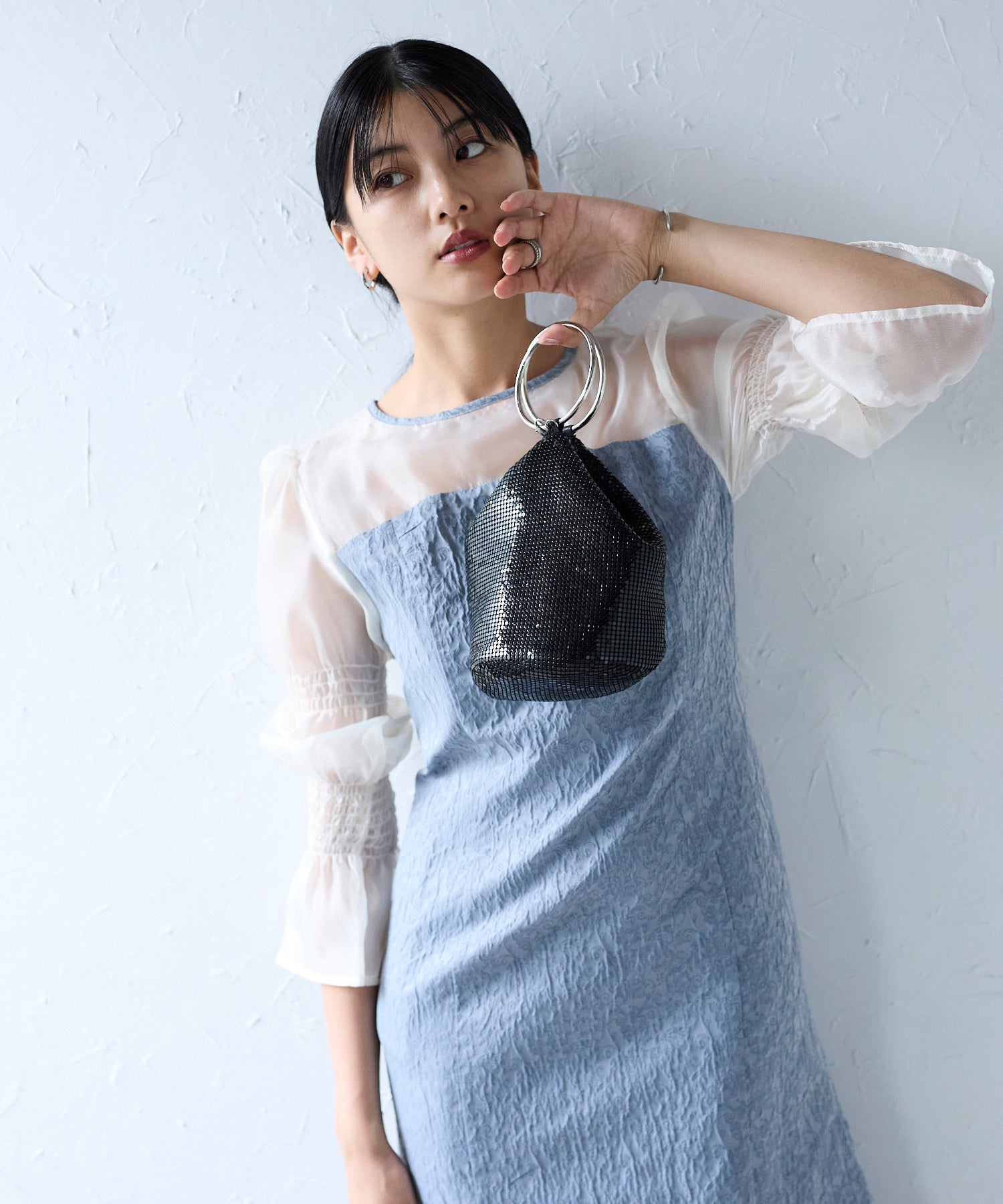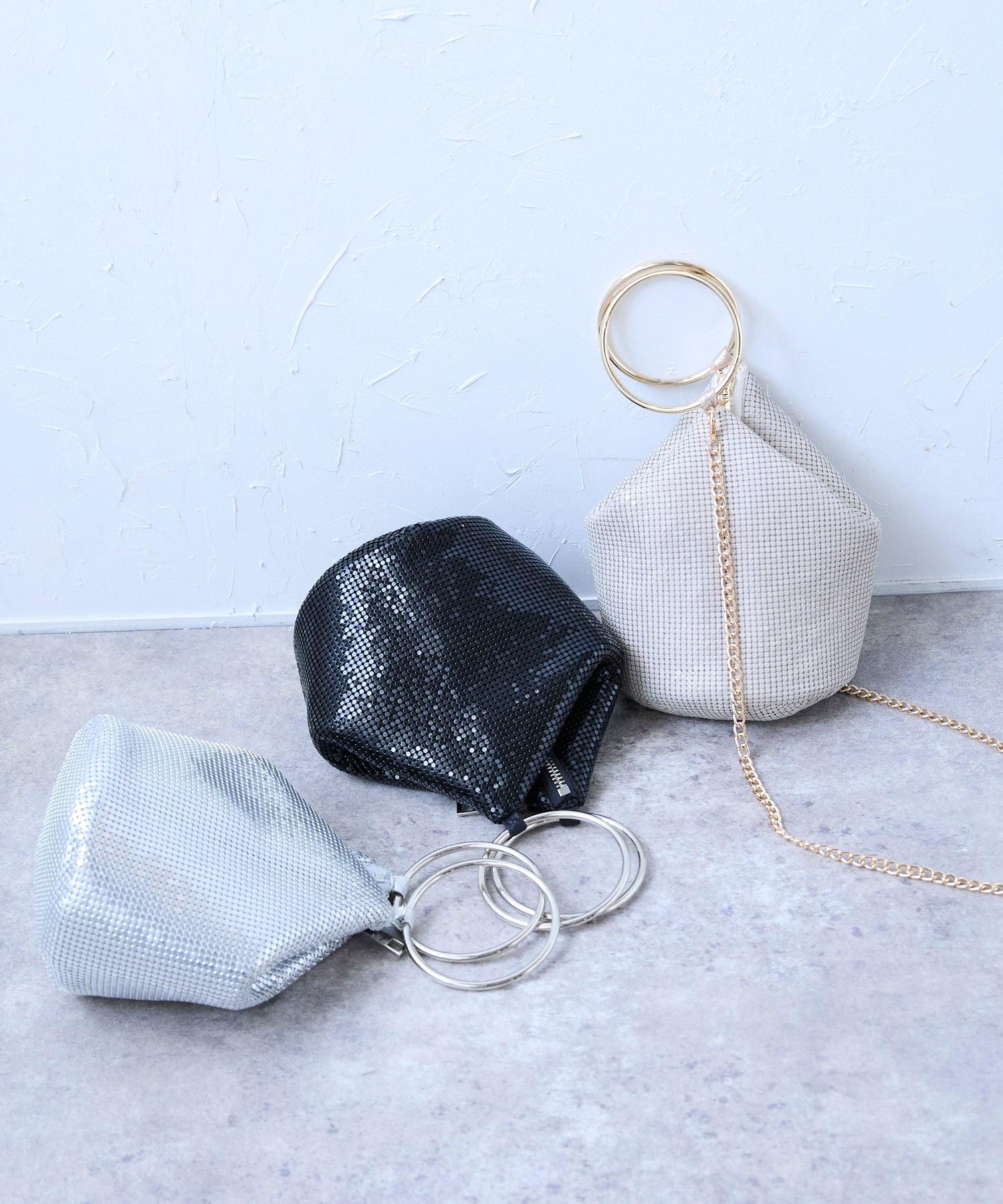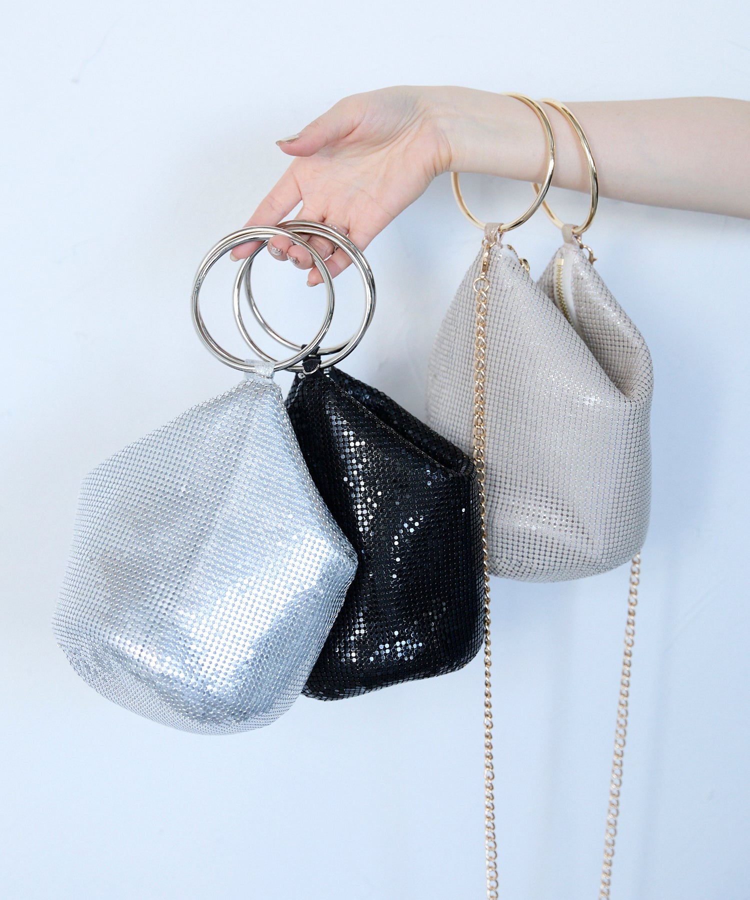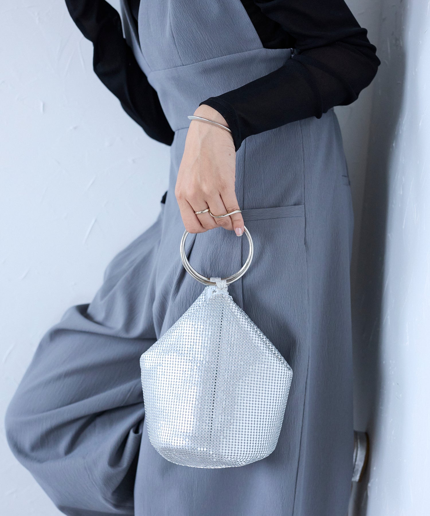 メタルメッシュ生地とリングハンドルのコラボバッグ
