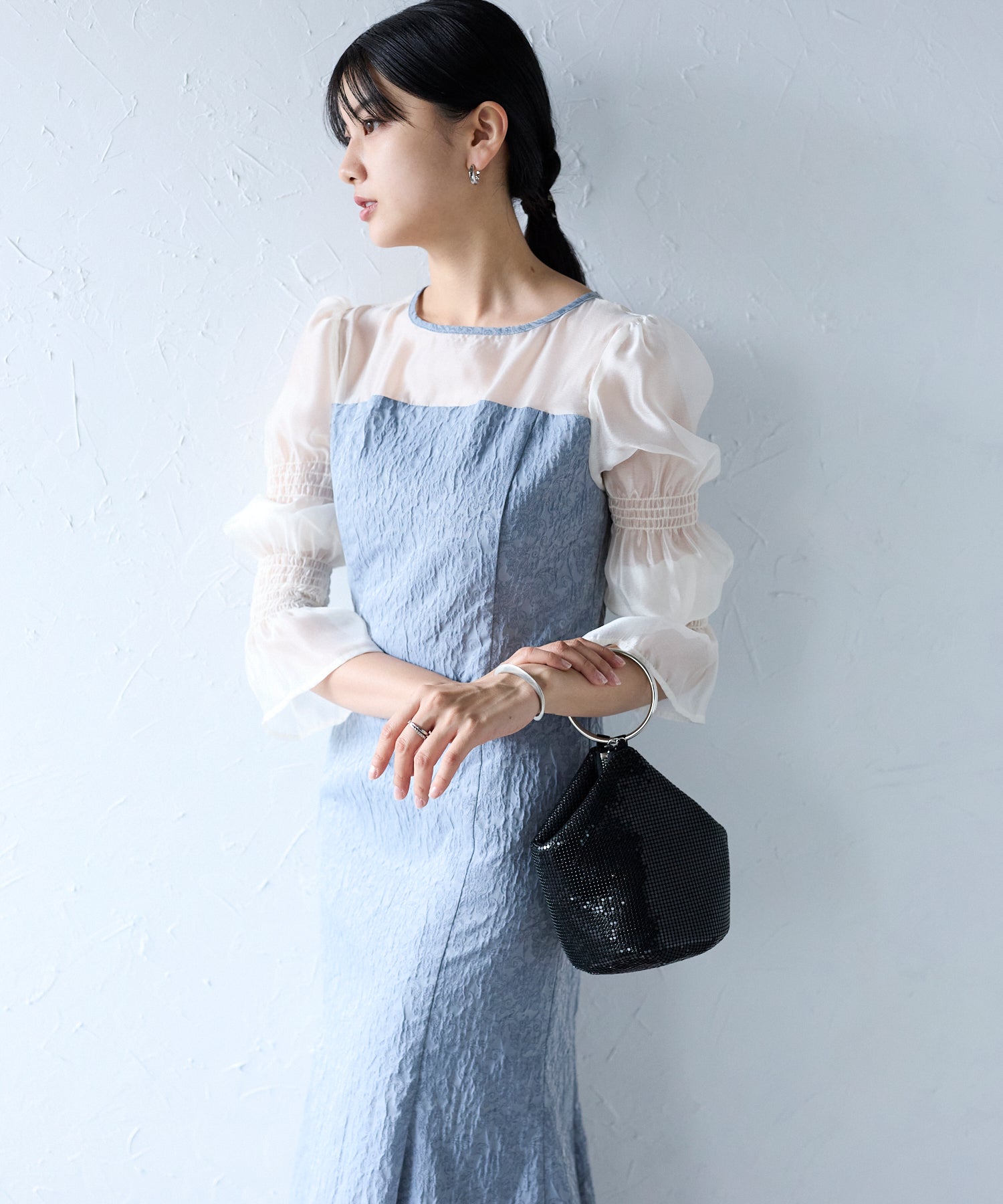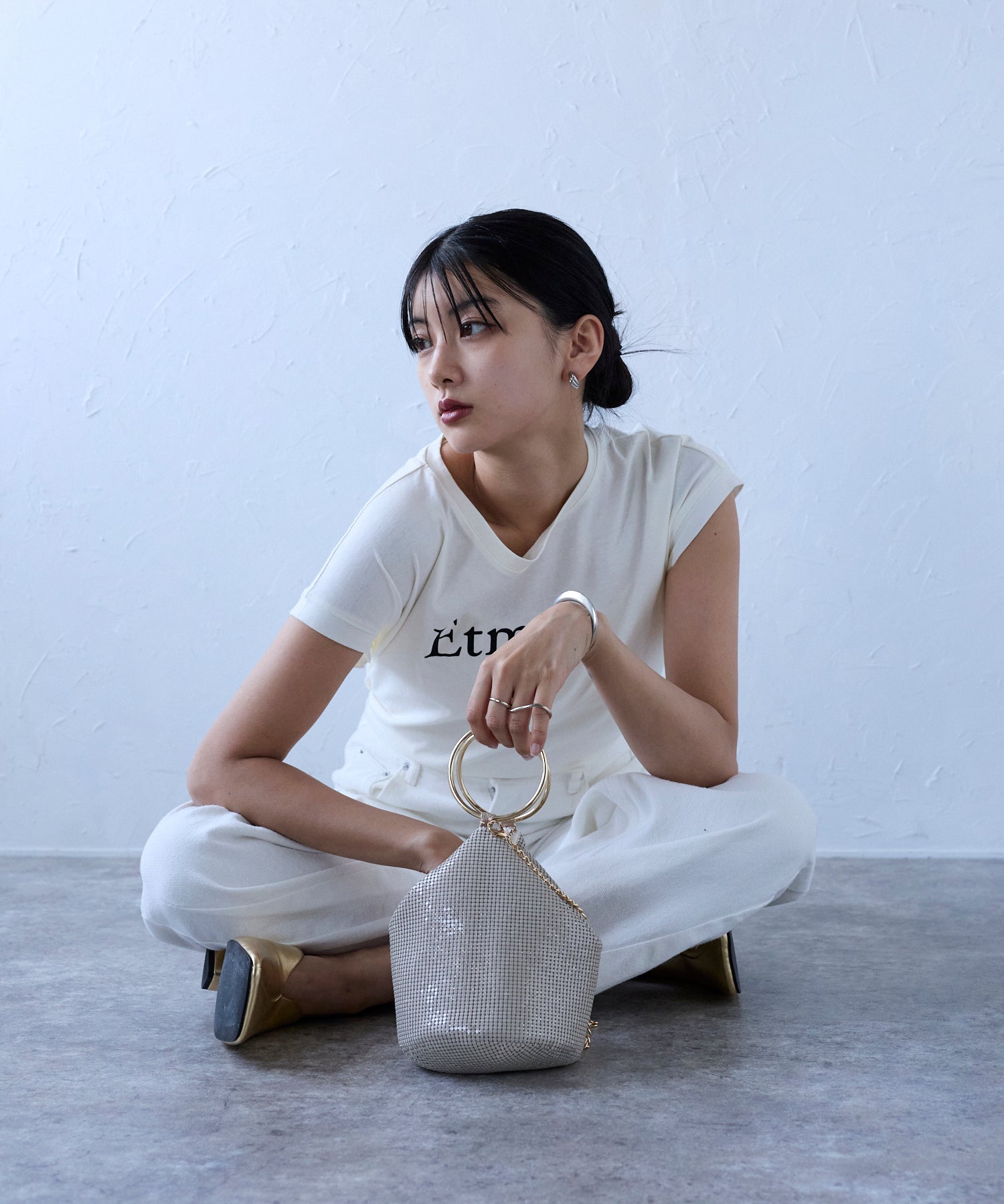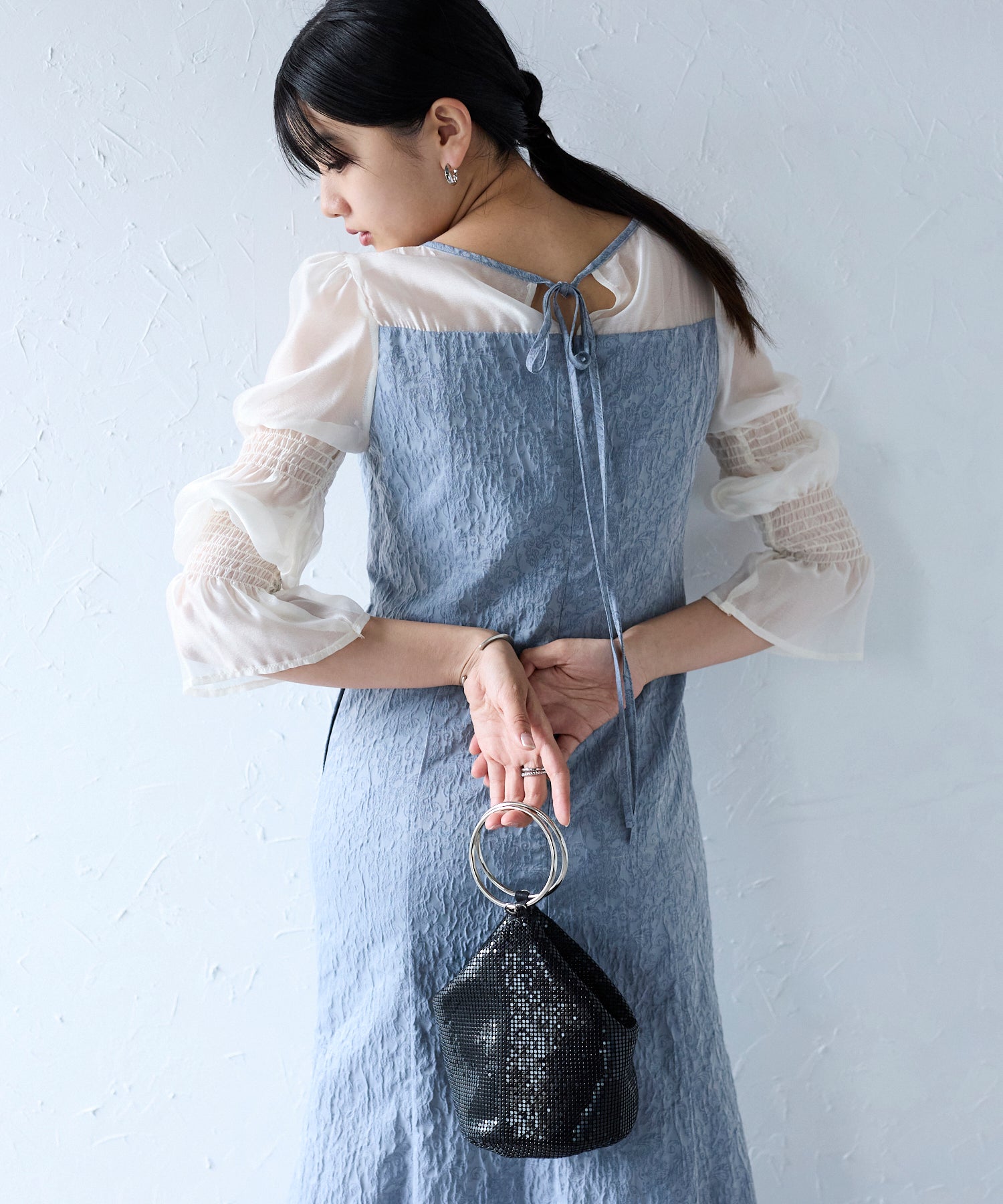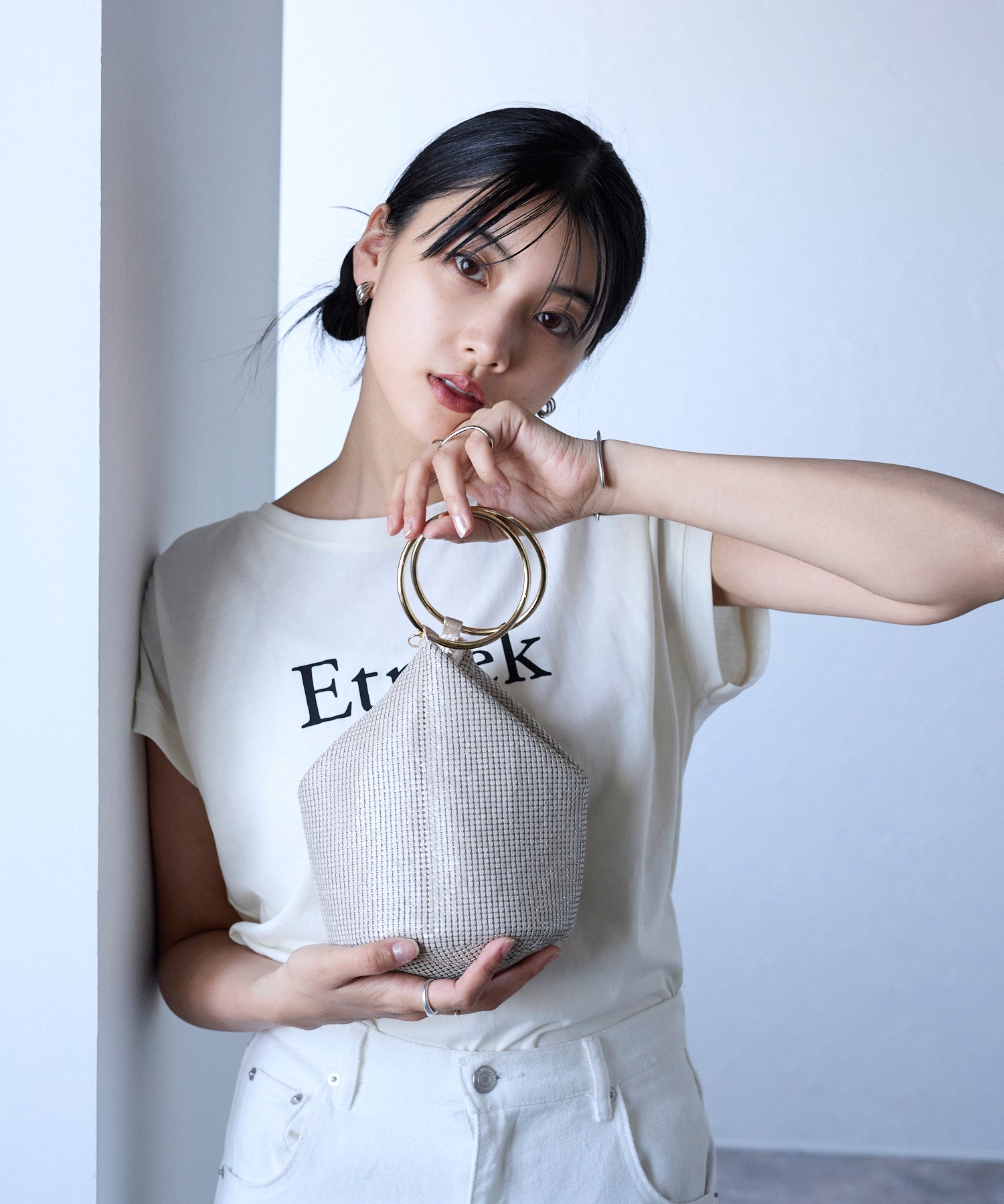 メタルメッシュ生地とリングハンドルのコラボバッグ