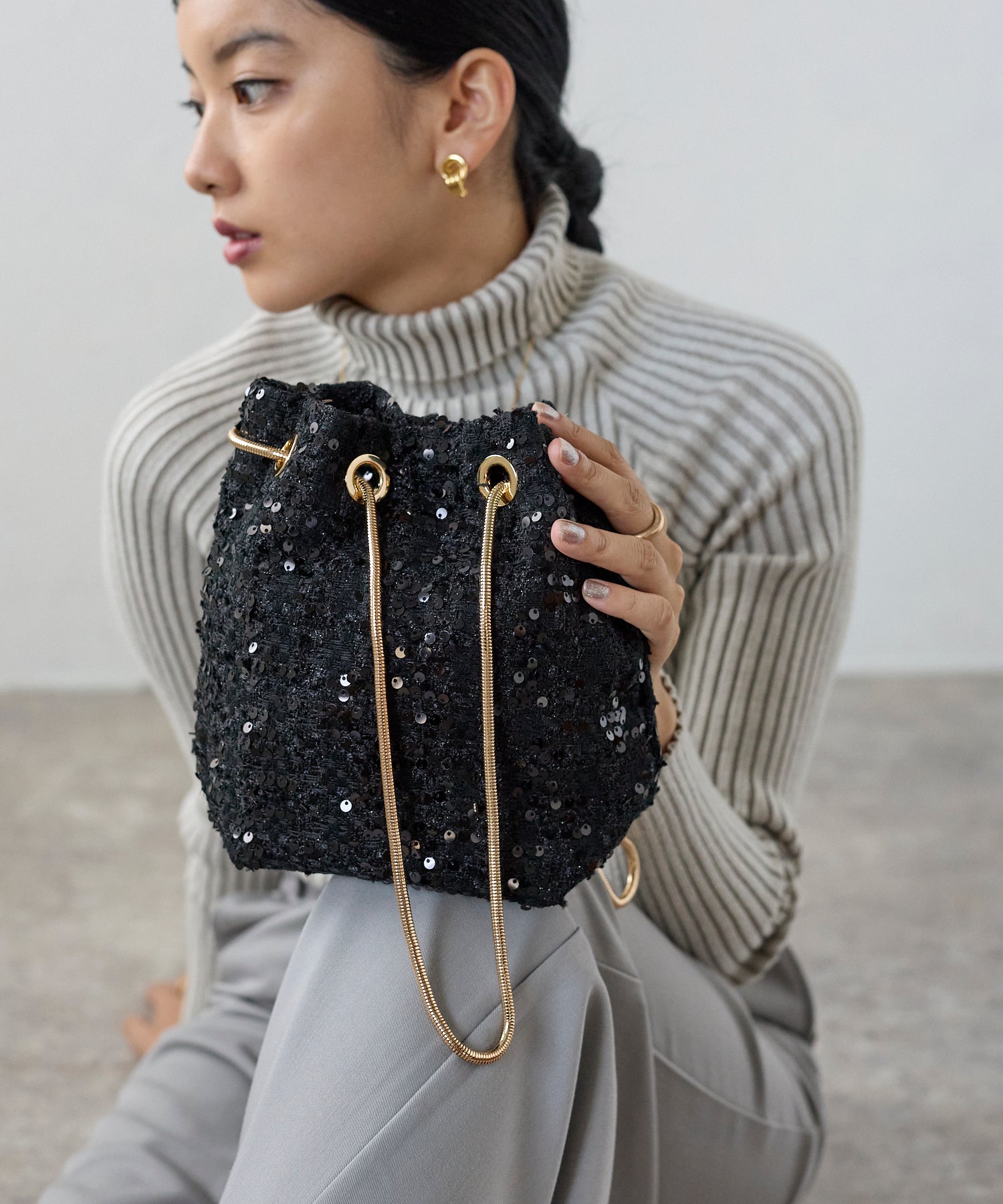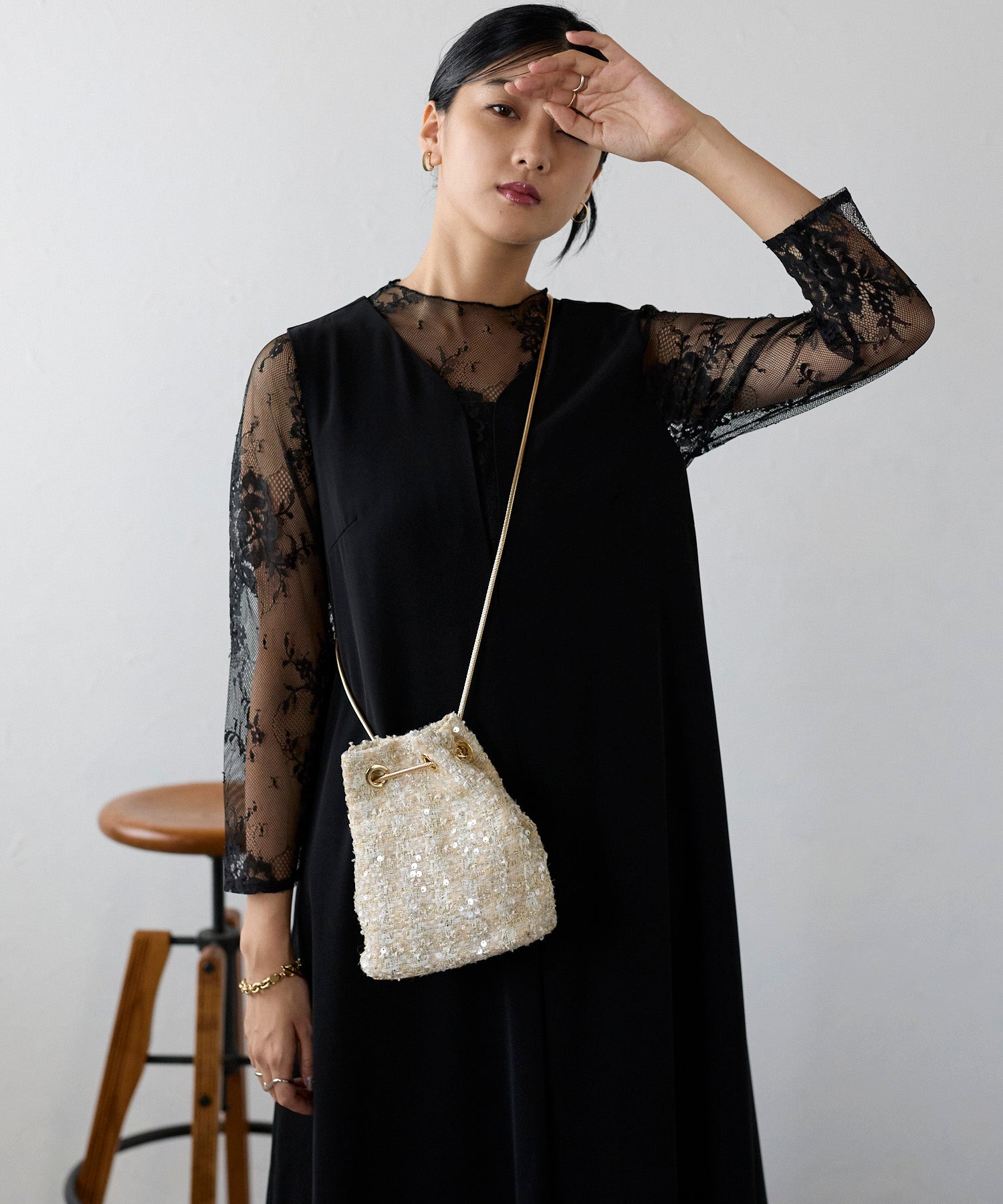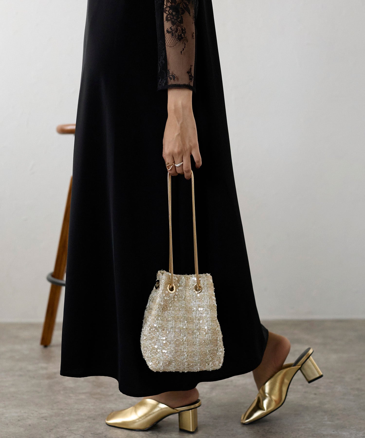 スマホやミニ財布など、小物がしっかり入るのでパーティーシーンだけでなくデイリー使用もおすすめです。