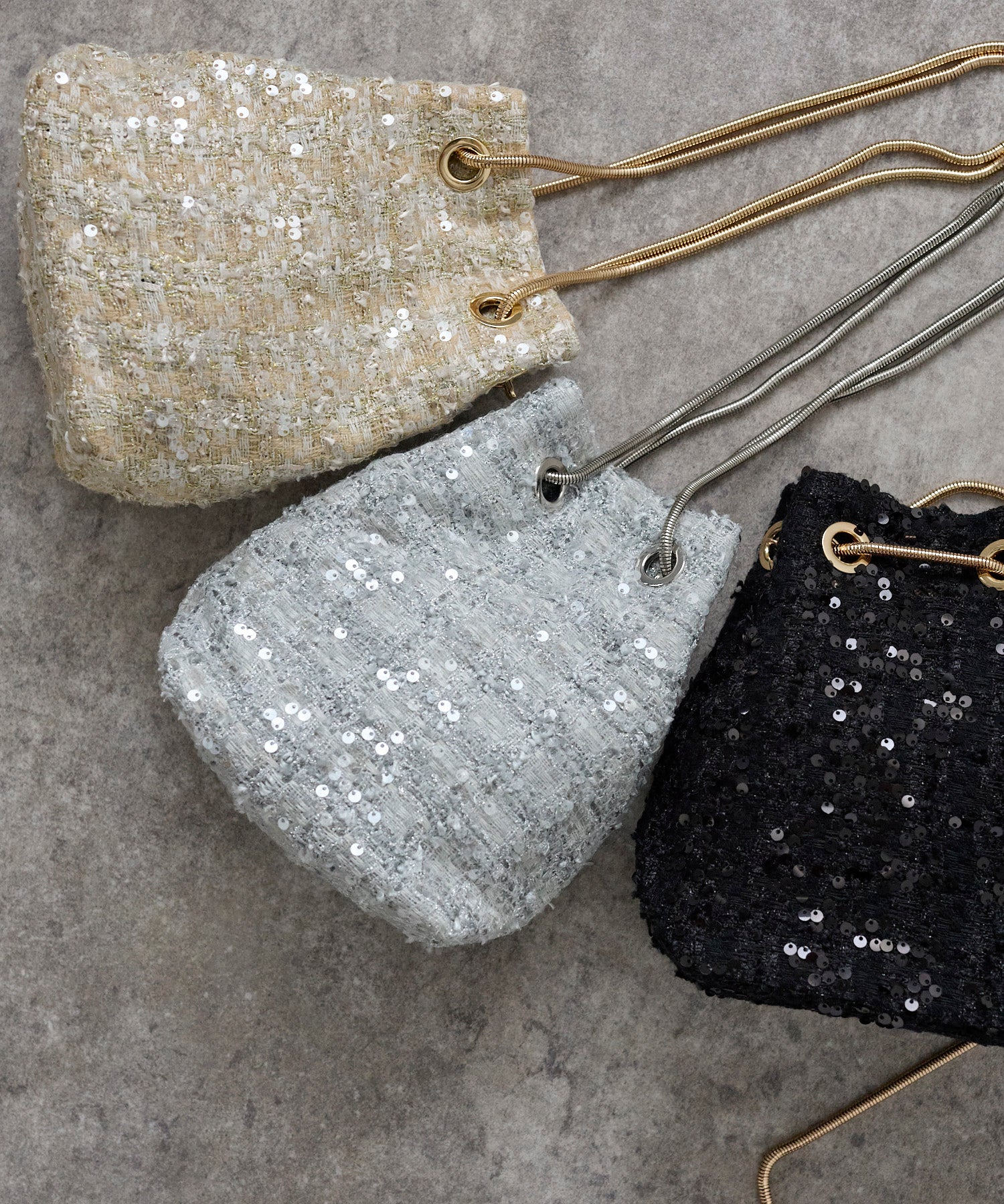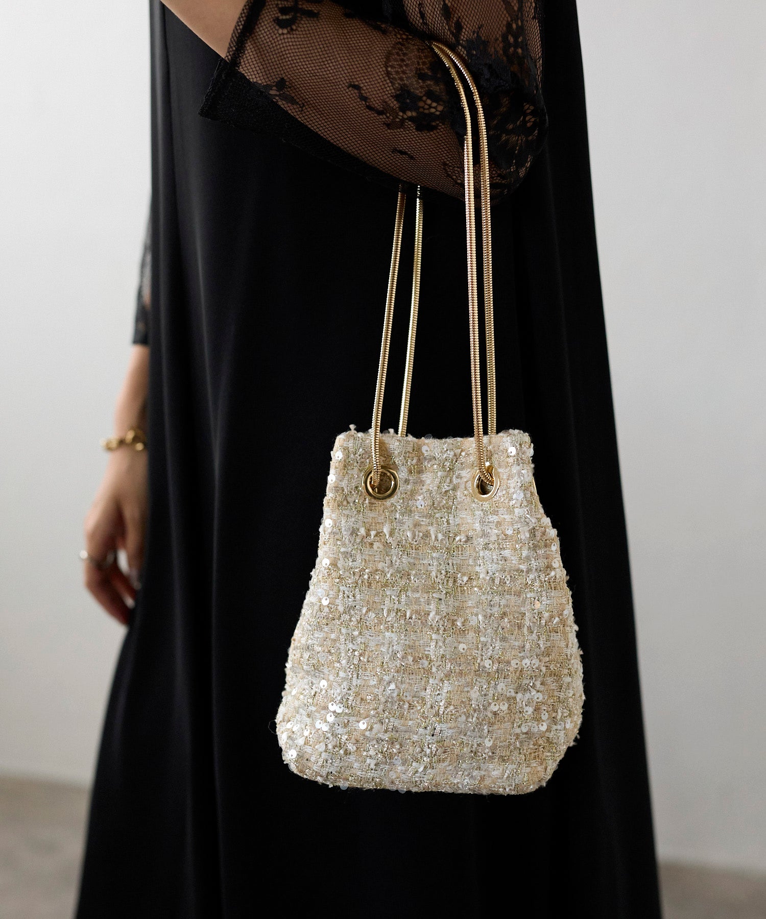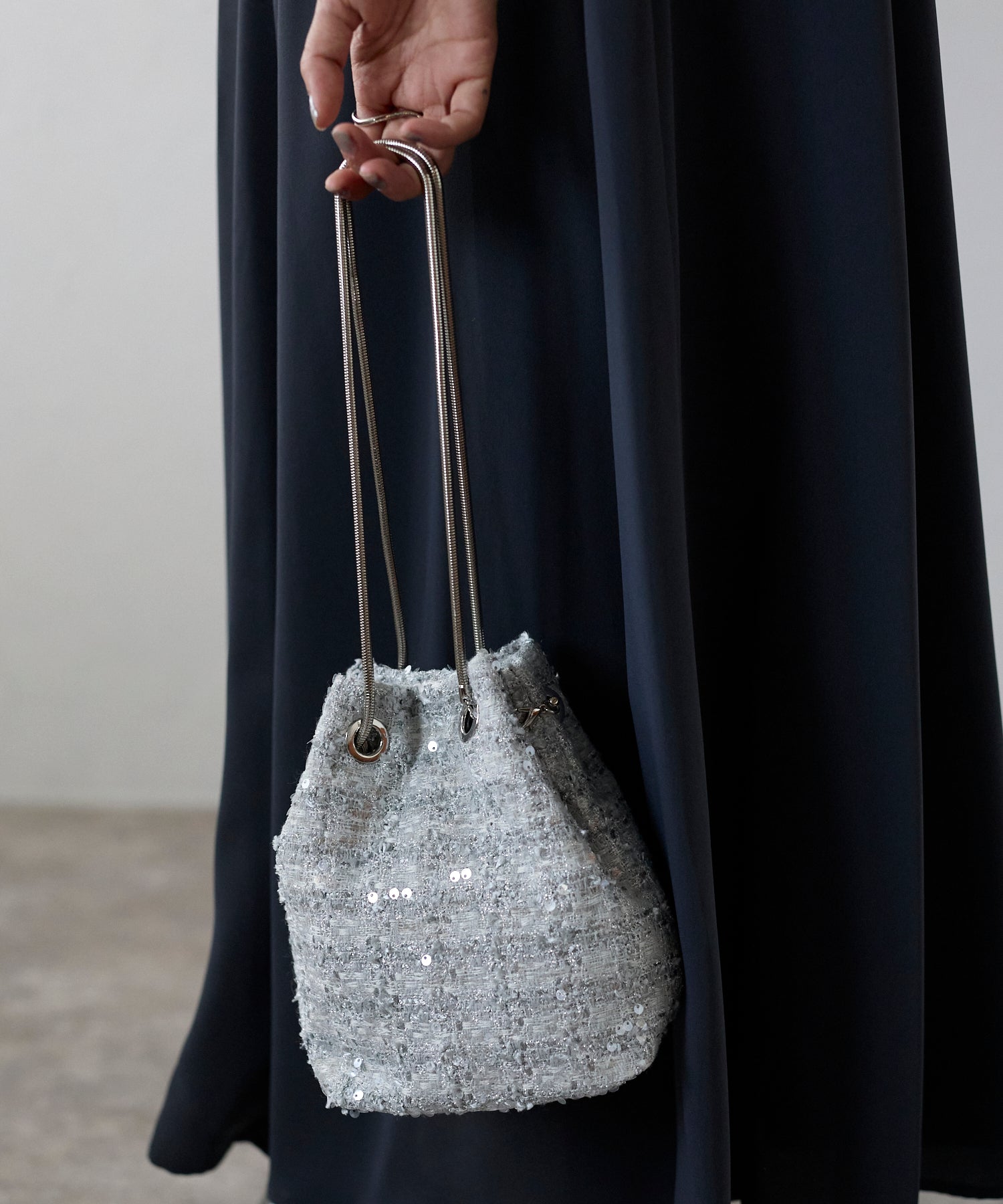 スマホやミニ財布など、小物がしっかり入るのでパーティーシーンだけでなくデイリー使用もおすすめです。