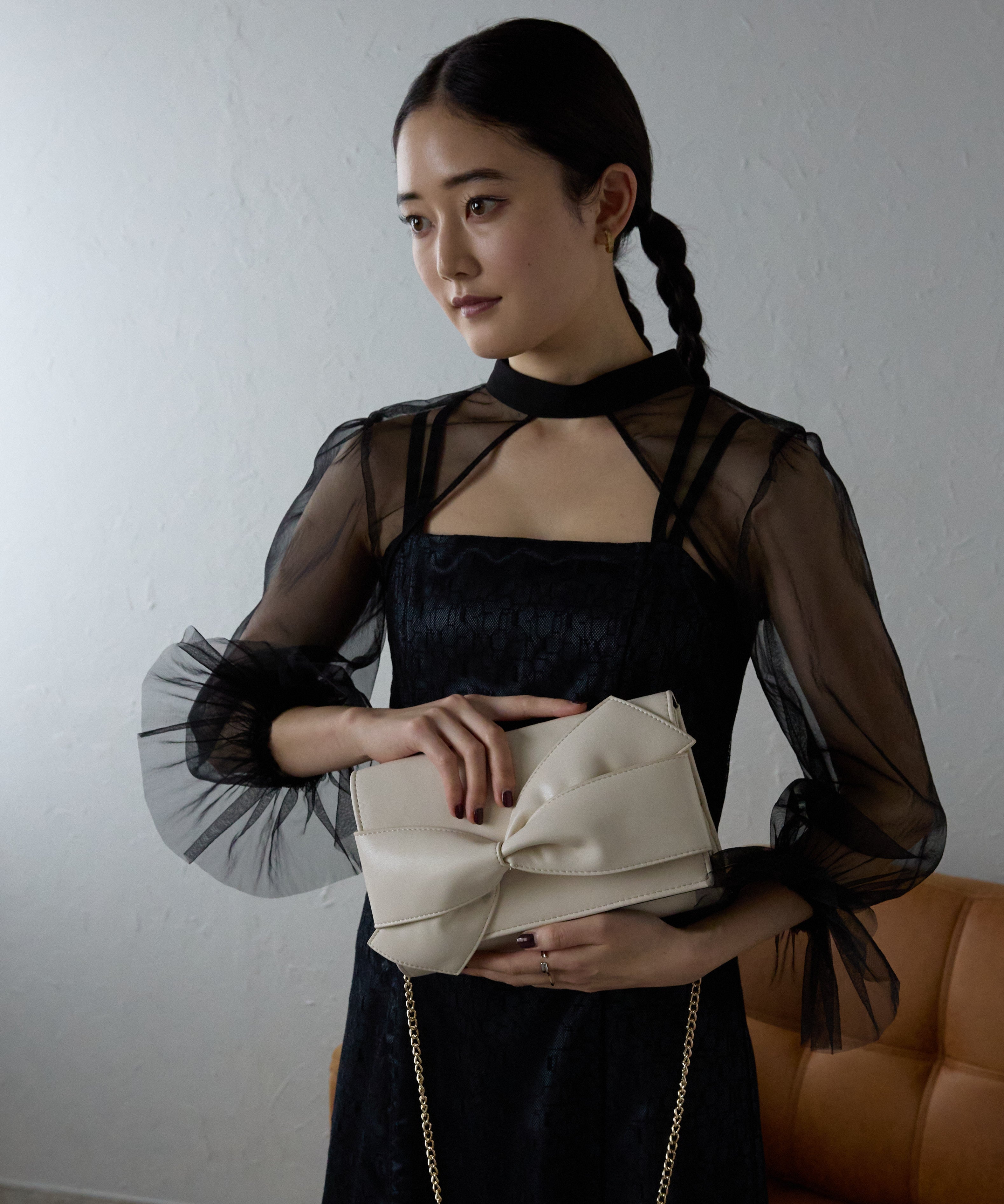 ご祝儀袋、スマホ、長財布など、小物がしっかり入るのでパーティーシーンだけでなくデイリー使用もおすすめです。
