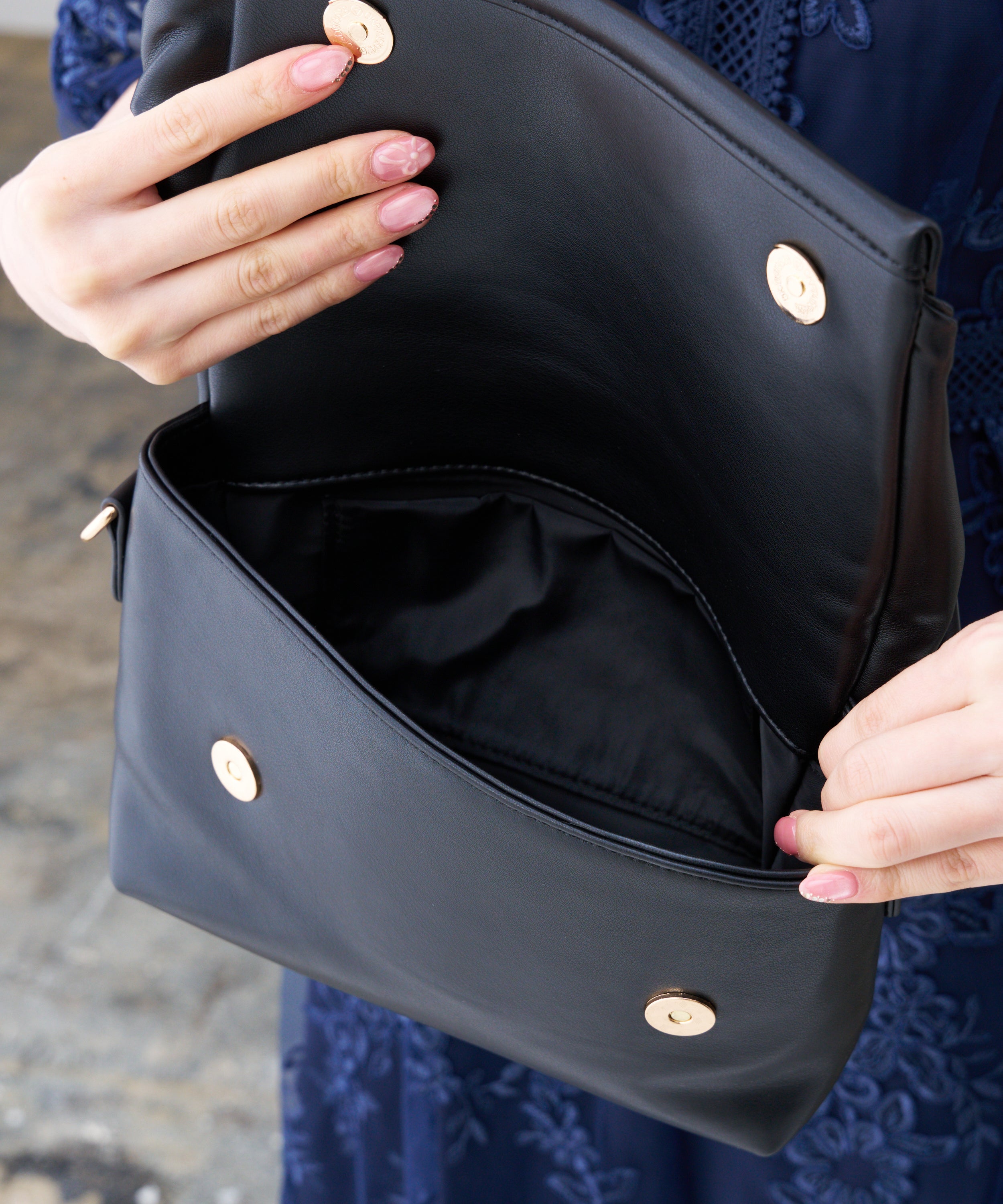 スマホやミニ財布など、小物がしっかり入るのでパーティーシーンだけでなくデイリー使用もおすすめです。