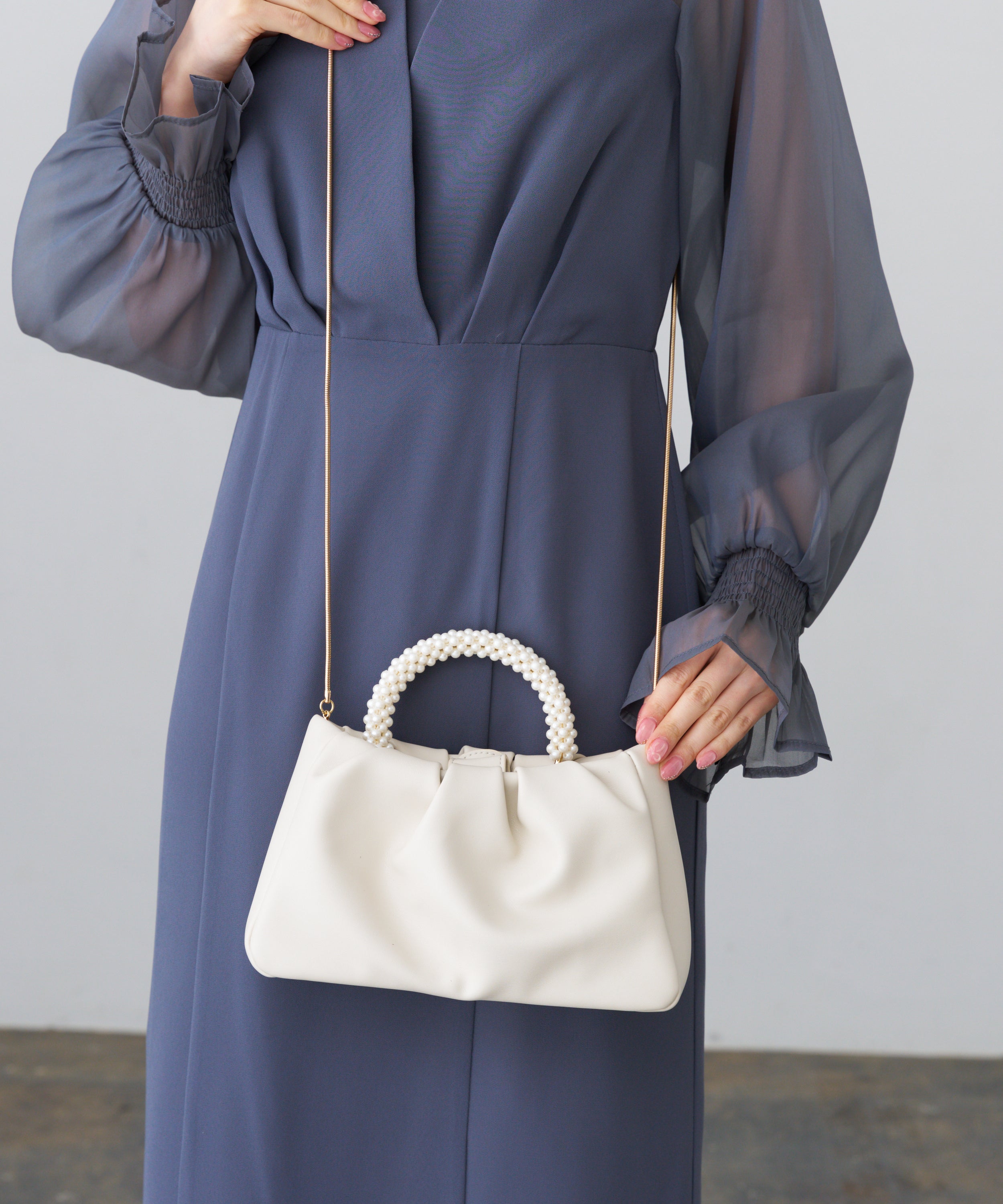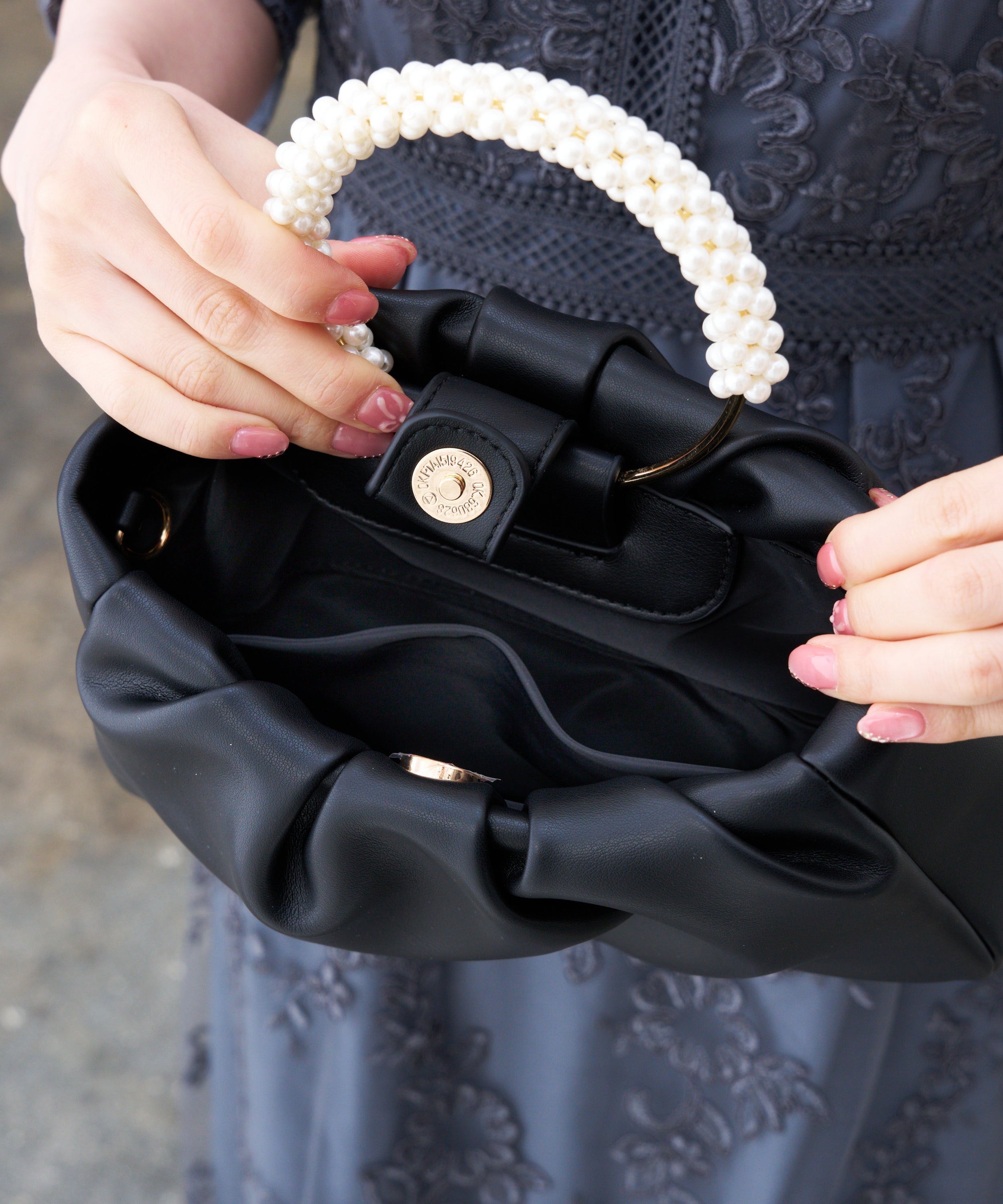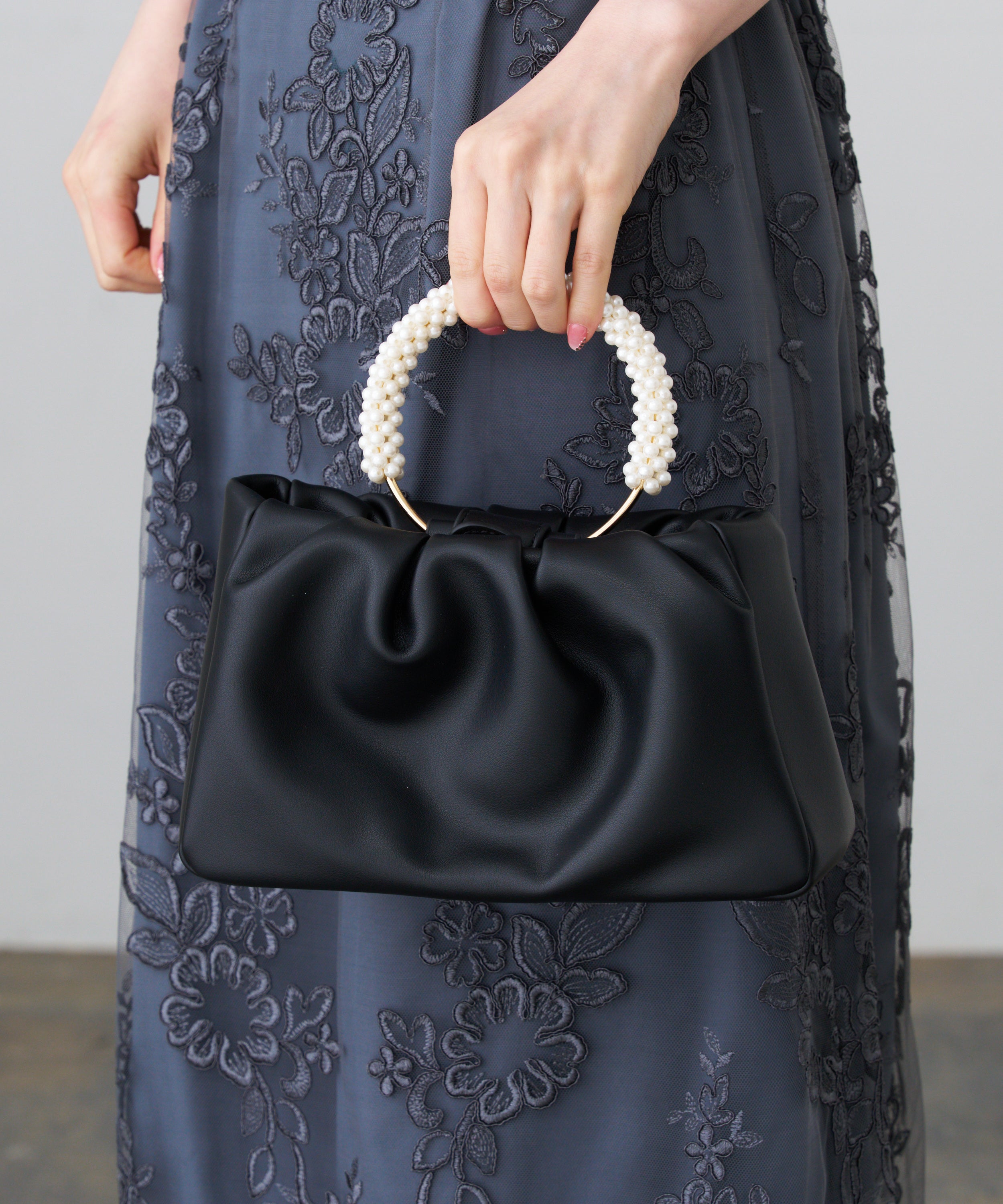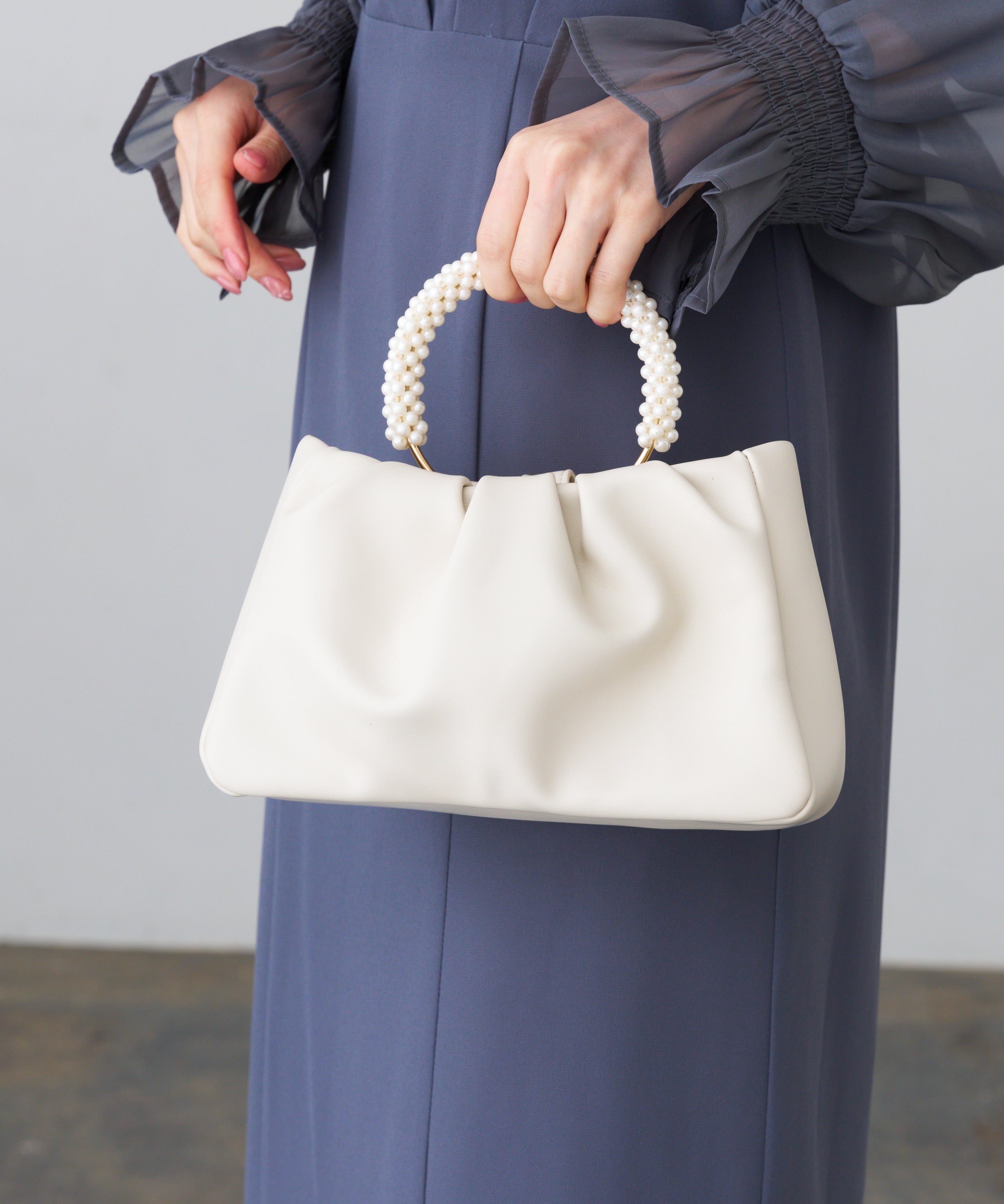 パールビーズハンドルとフェイクレザーのコラボバッグ