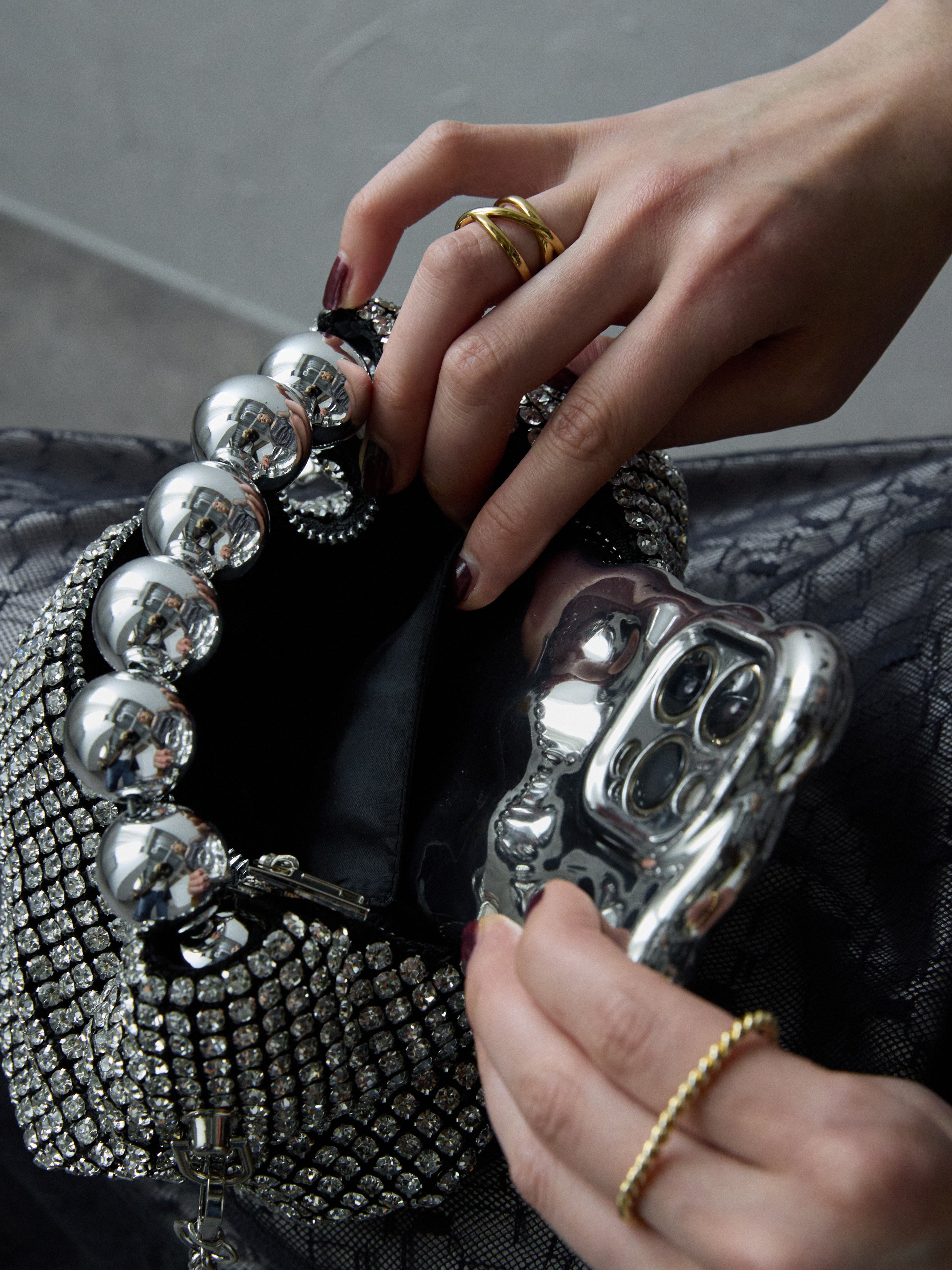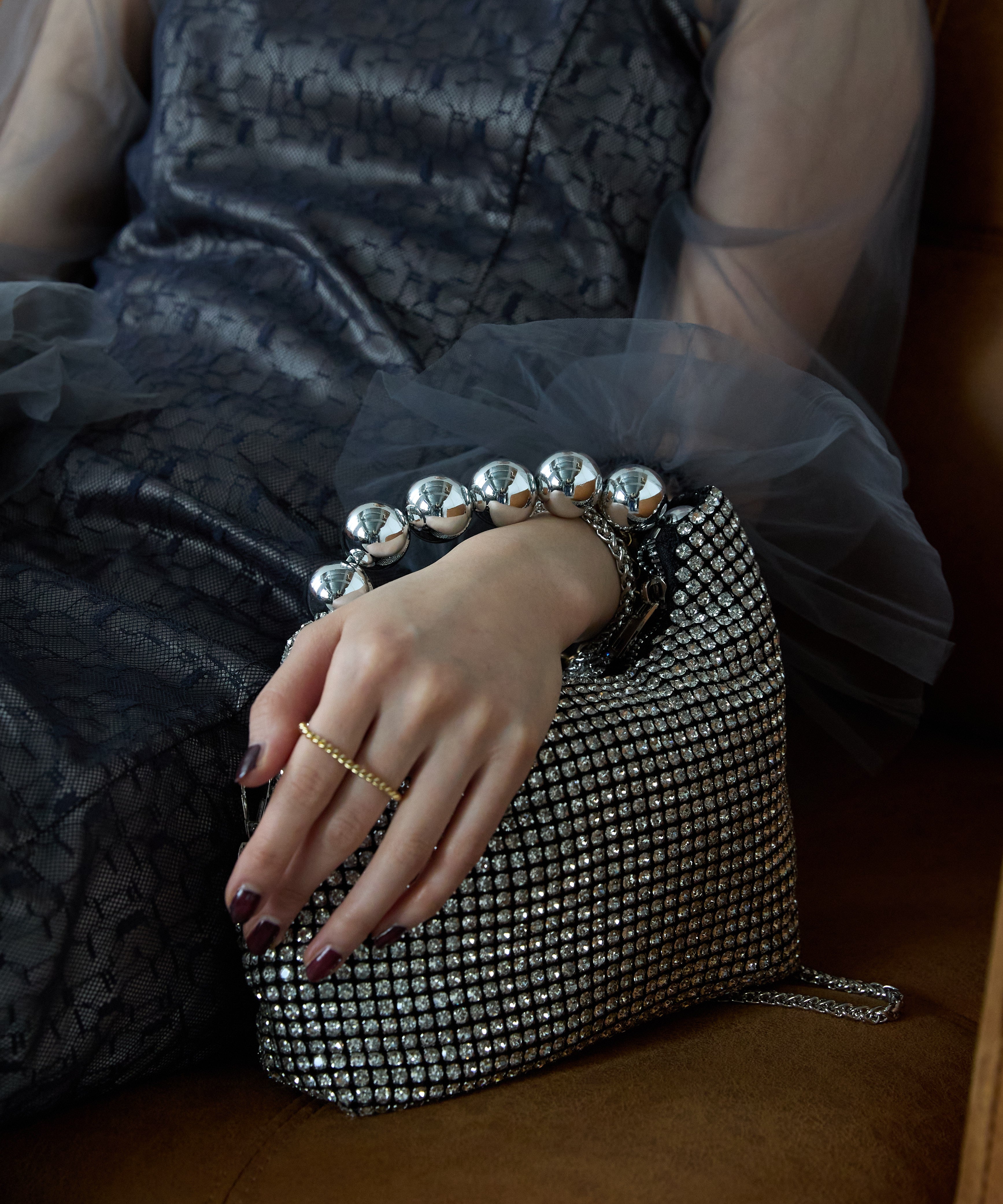 スマホやミニ財布など、小物がしっかり入るのでパーティーシーンだけでなくデイリー使用もおすすめです。