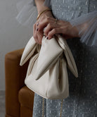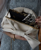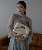 大きなダブルリボンが特徴的なフェイクレザーハンドバッグ