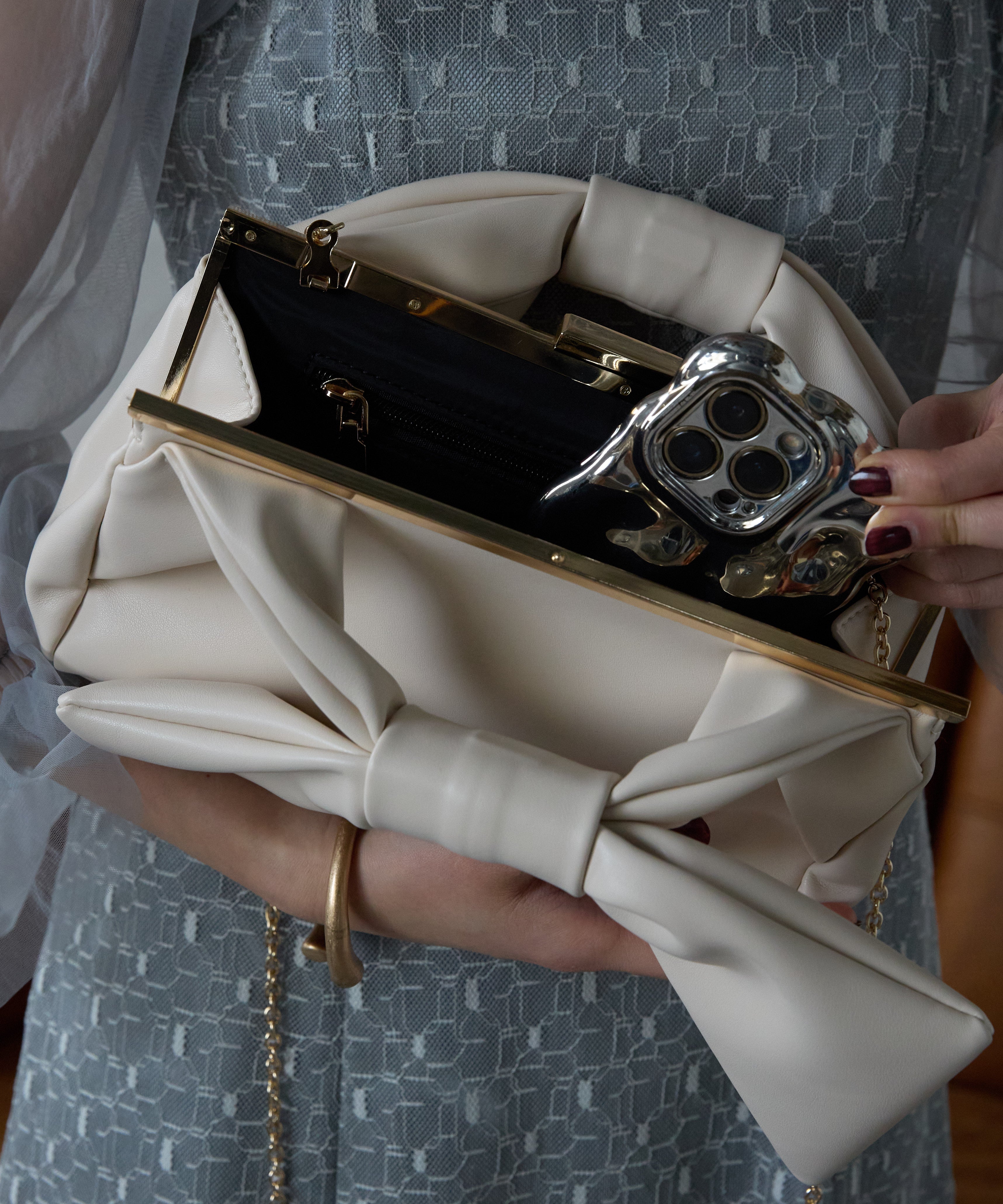 お祝儀袋やスマホ、長財布など、小物がしっかり入るのでパーティーシーンだけでなくデイリー使用もおすすめです。