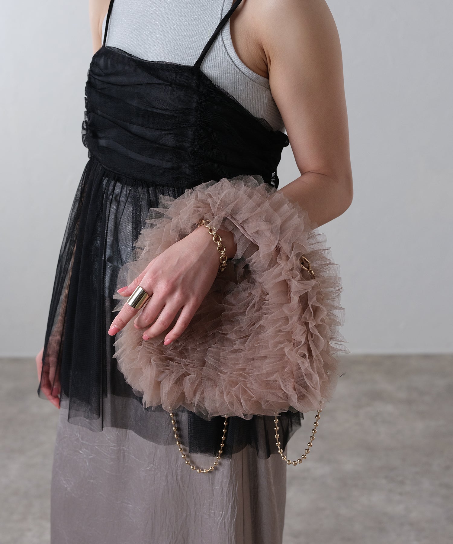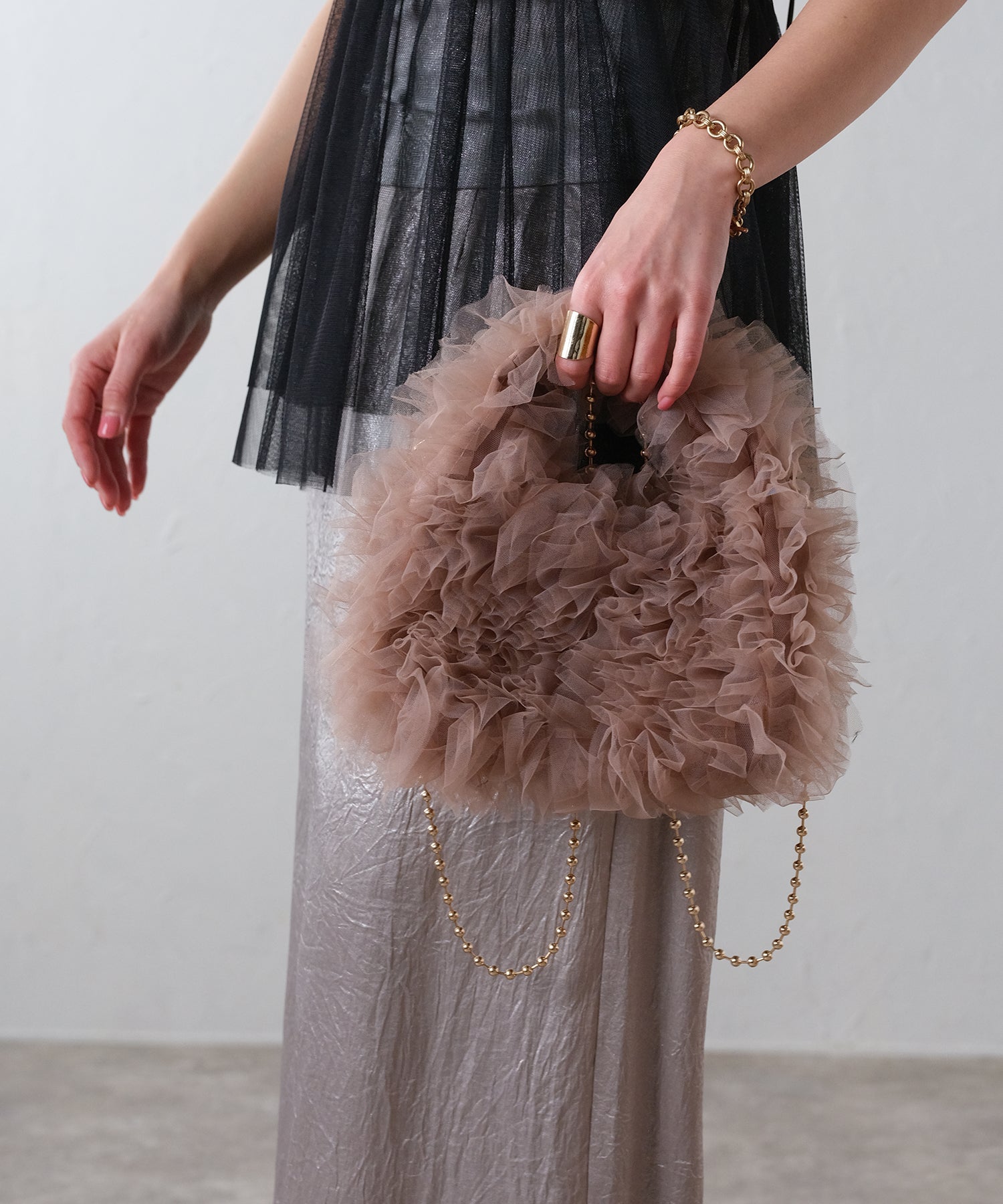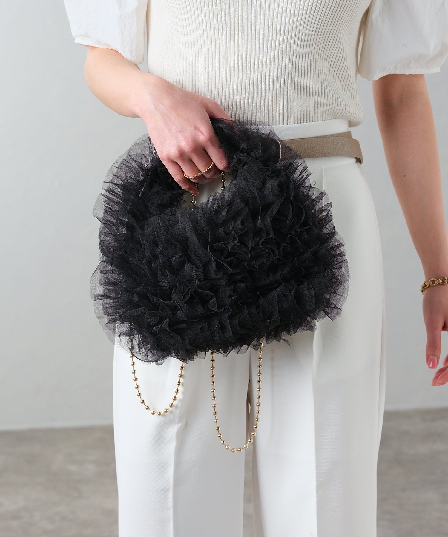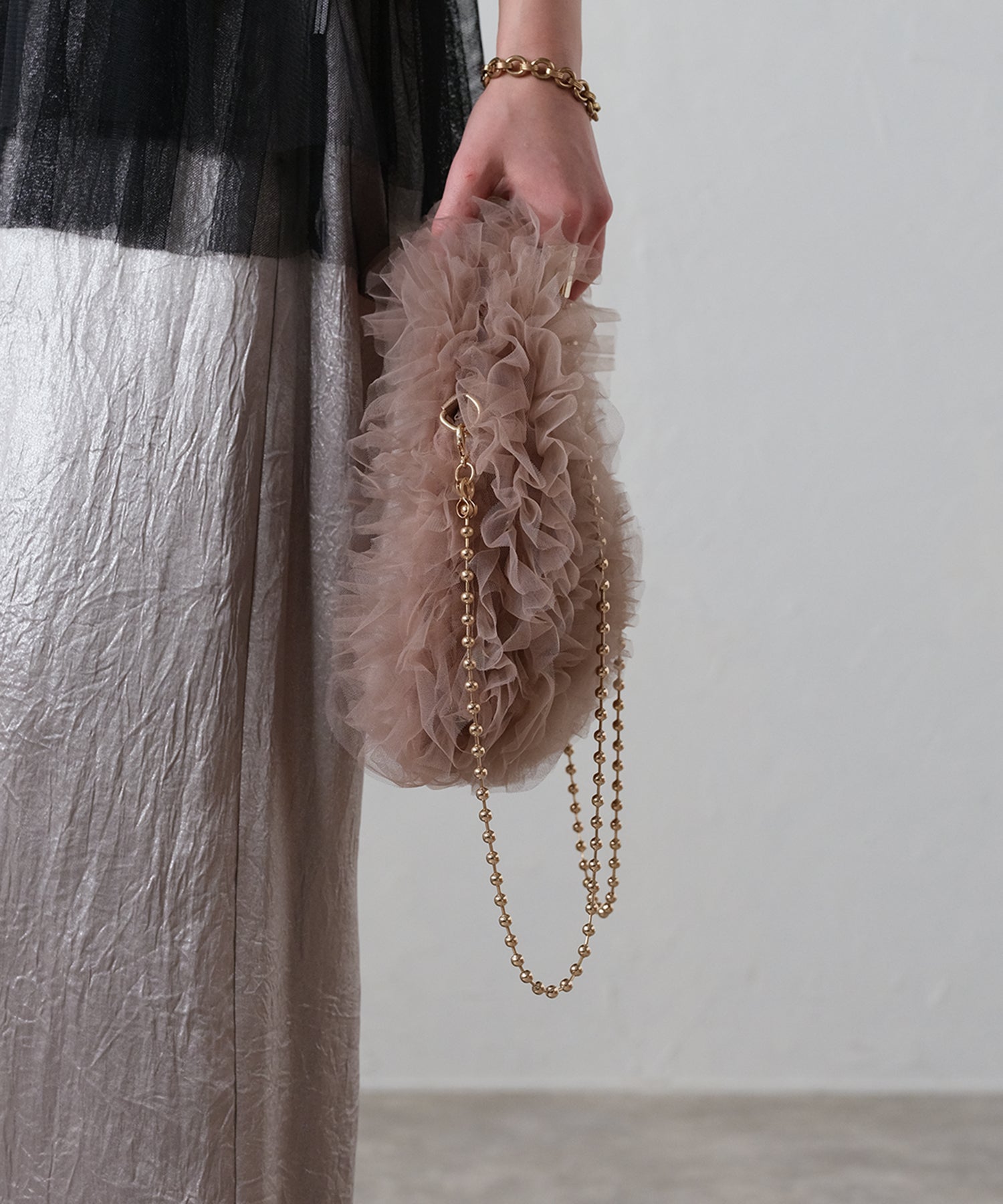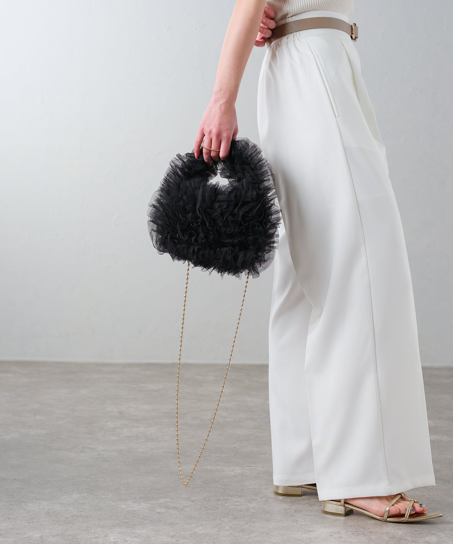スマホやミニ財布など、小物がしっかり入るのでパーティーシーンだけでなくデイリー使用もおすすめです。