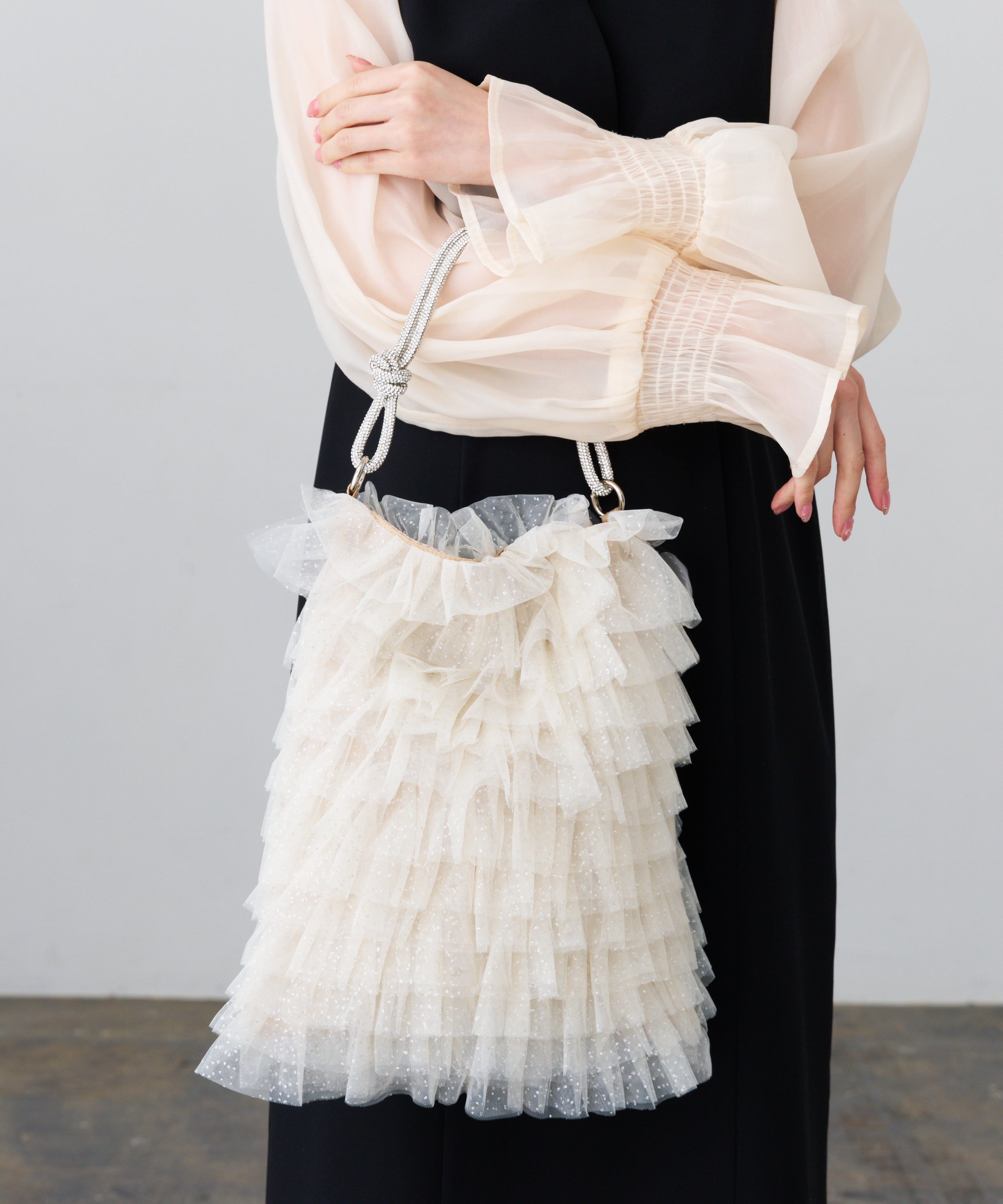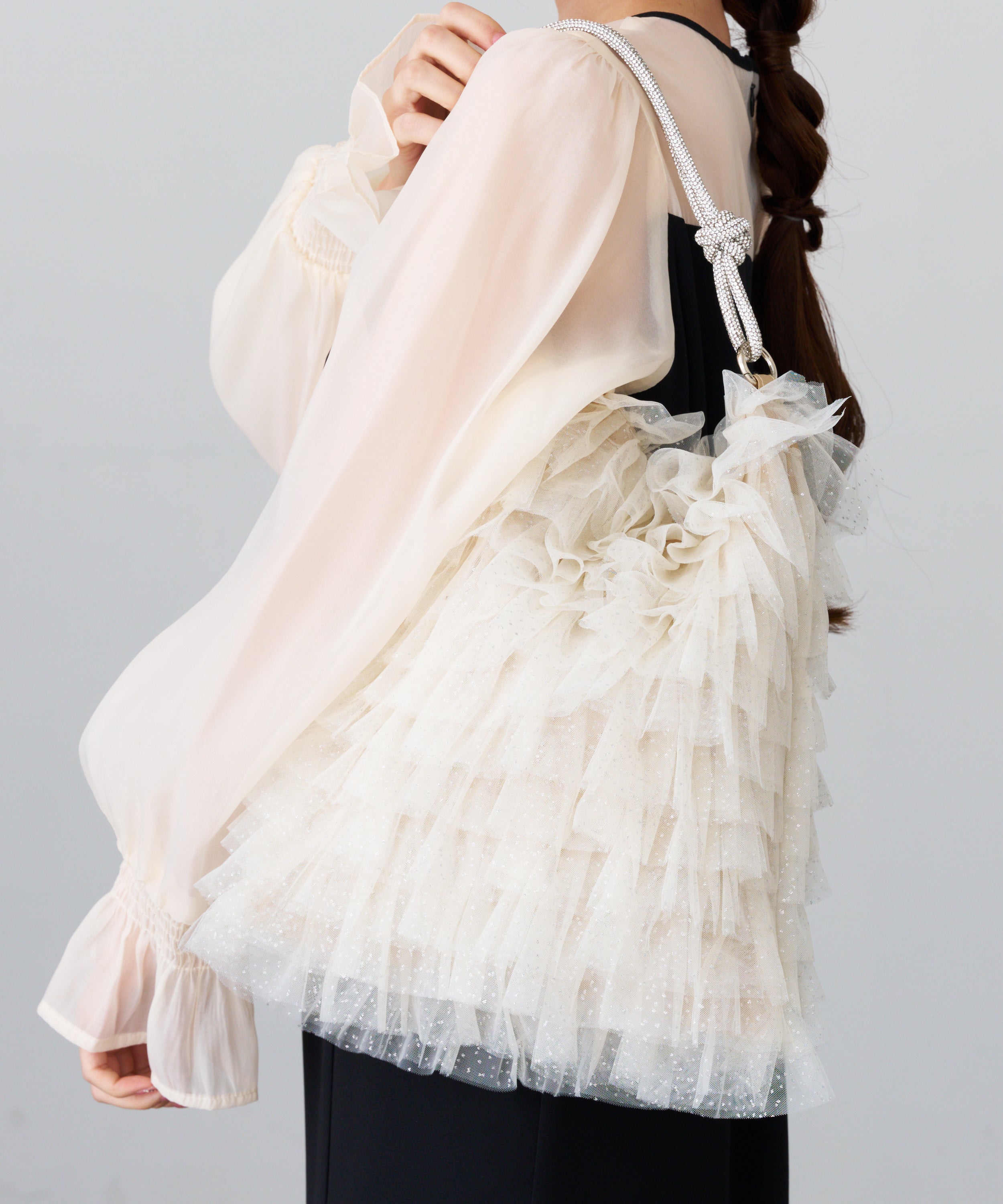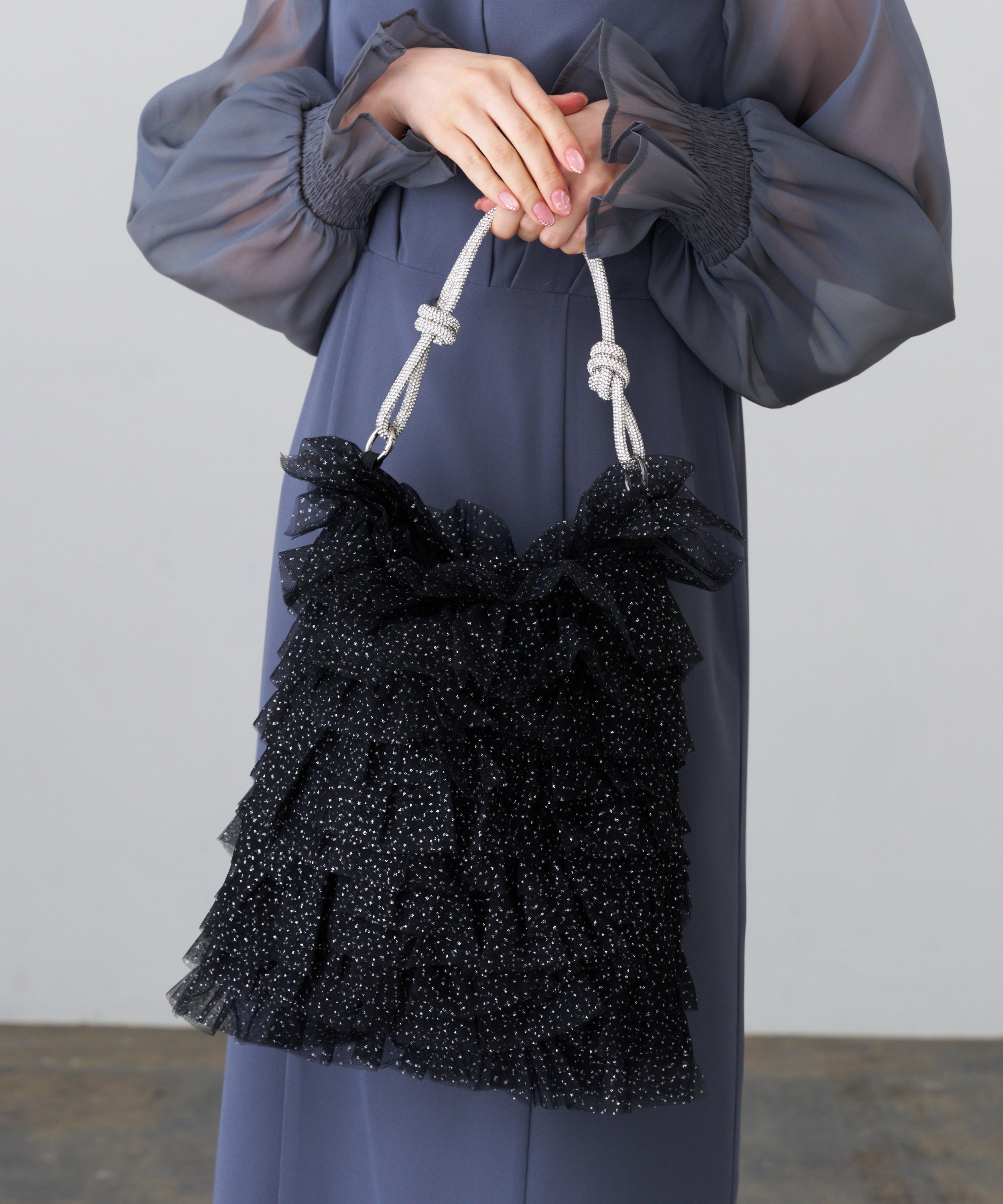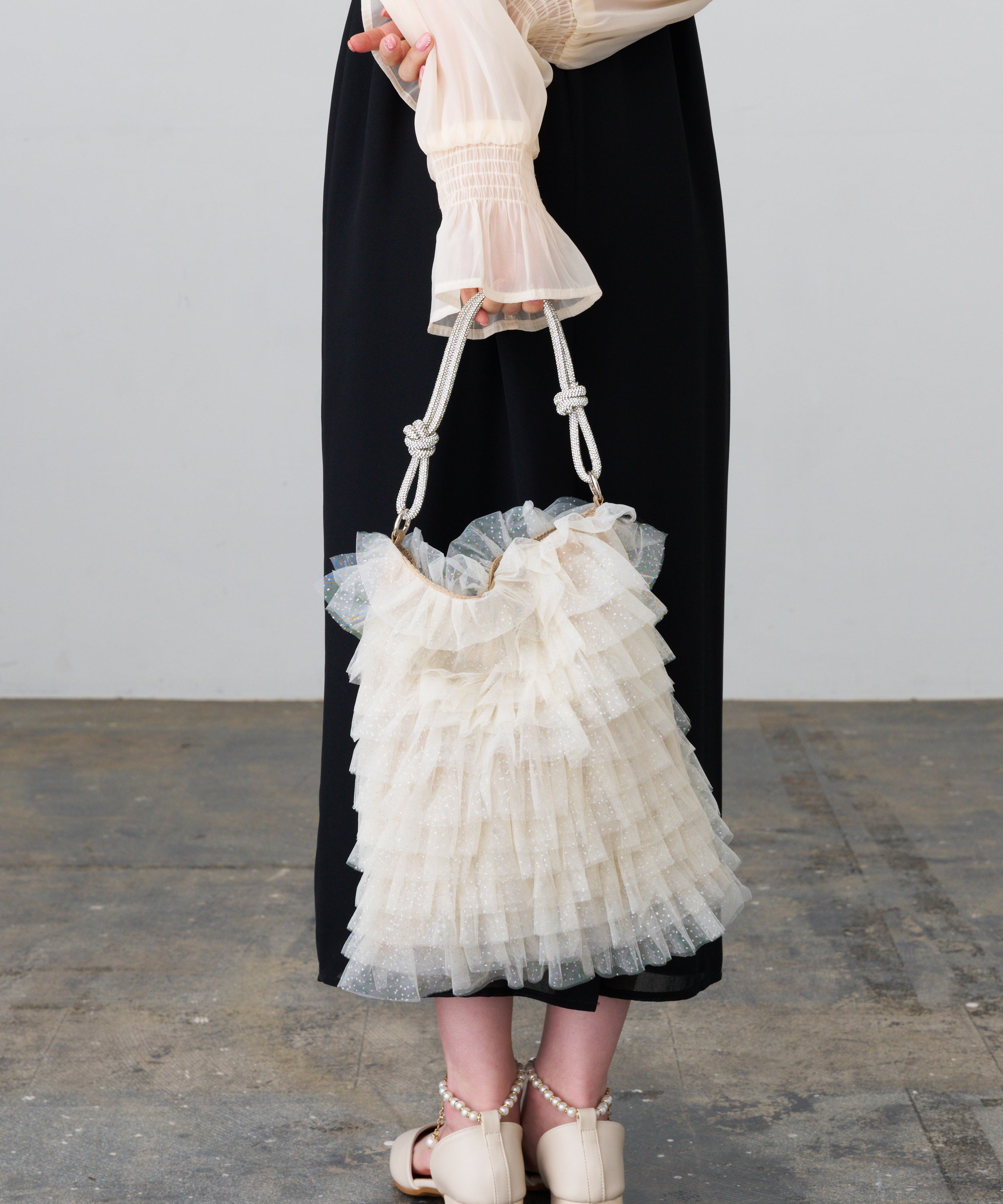 ラメチュールフリルトートバッグ