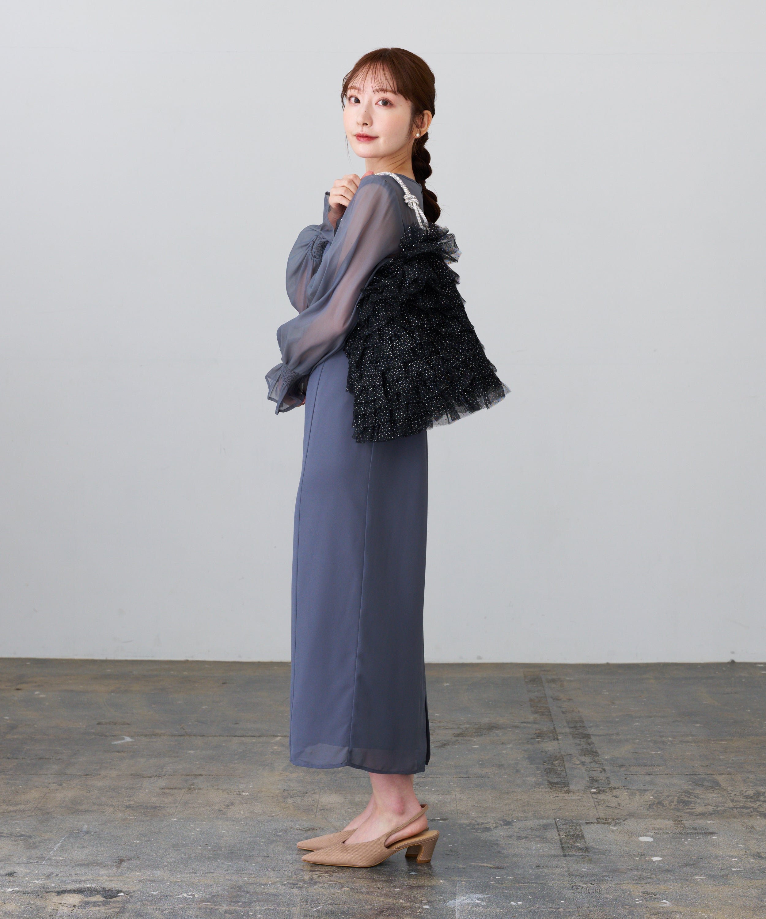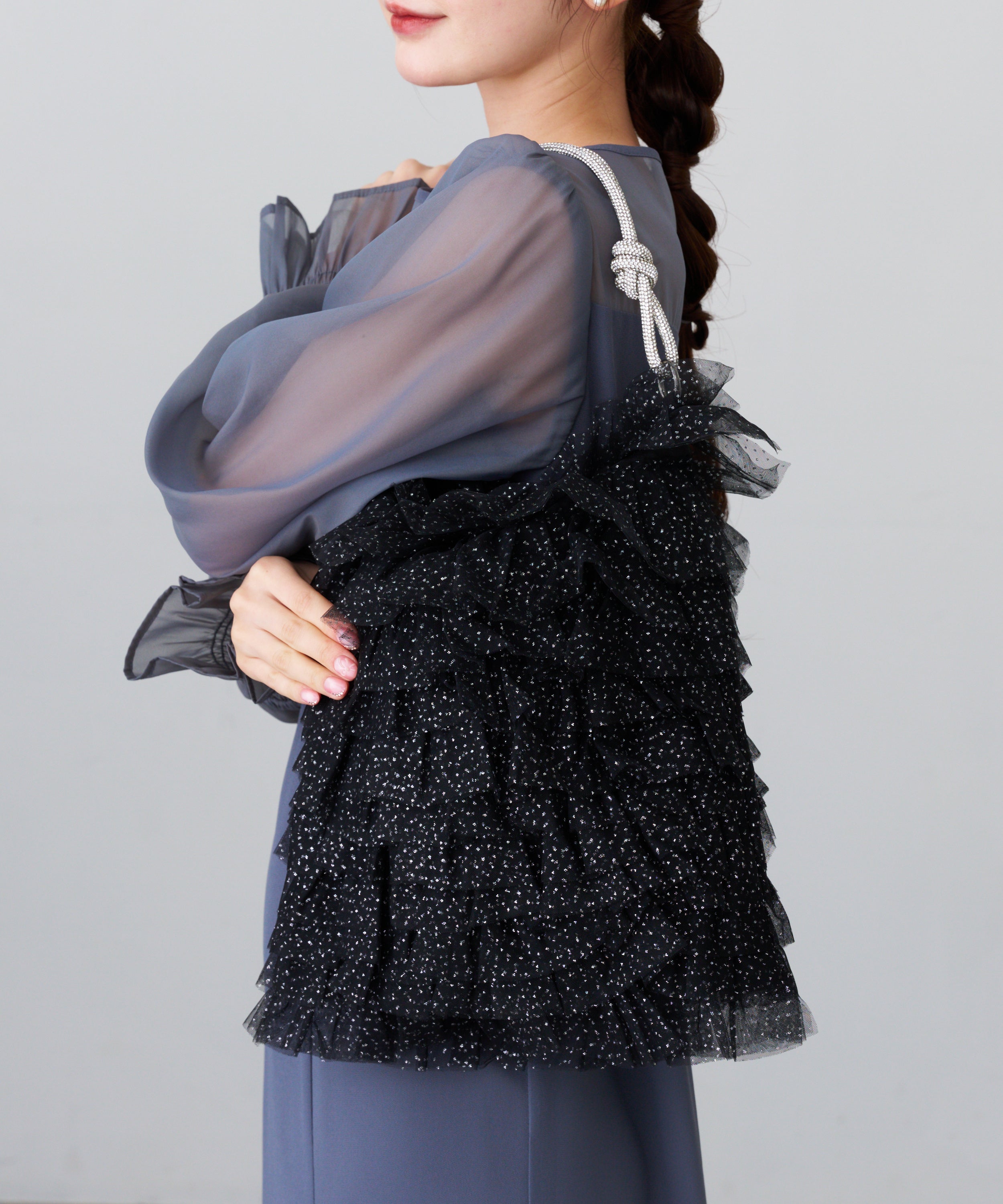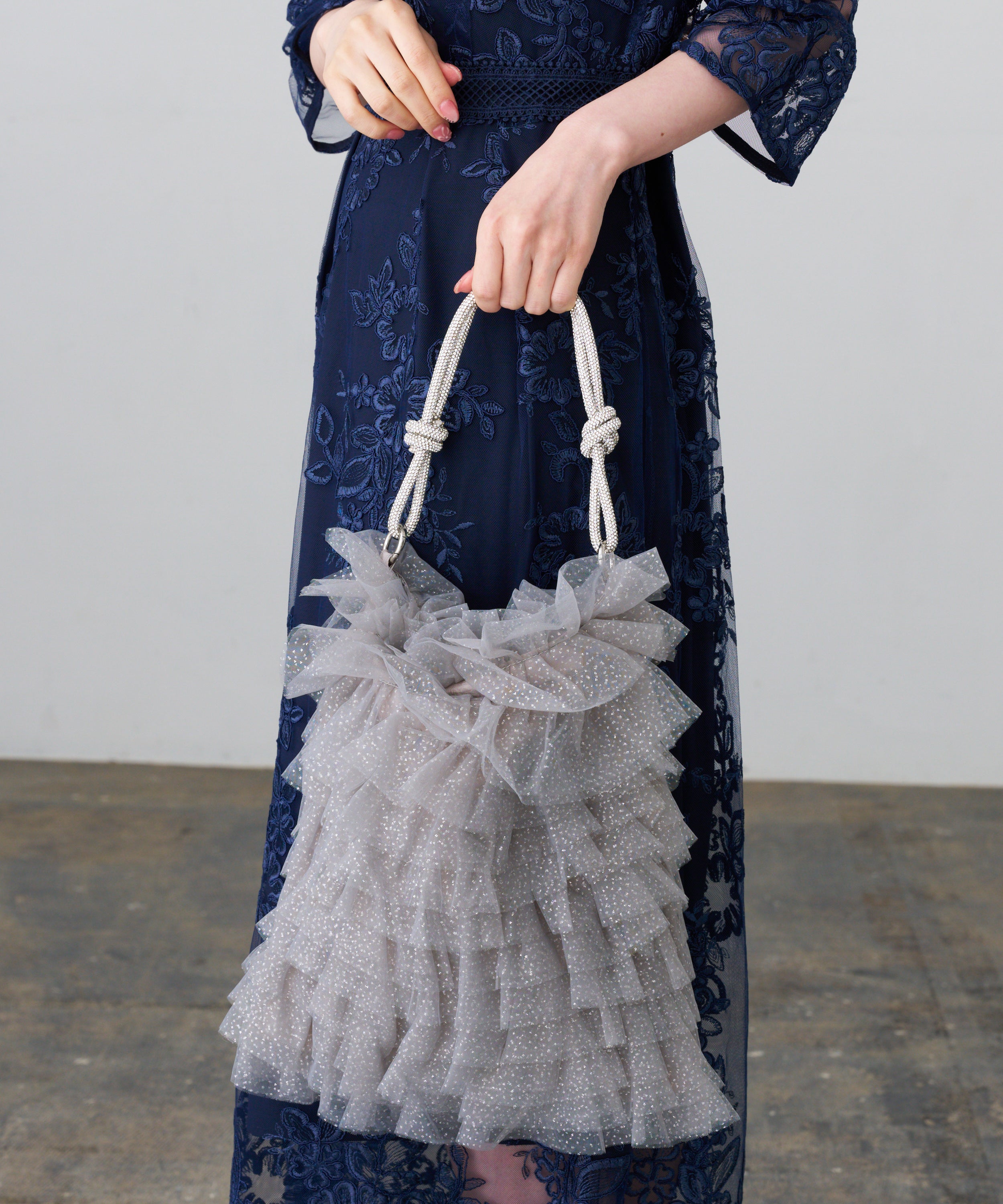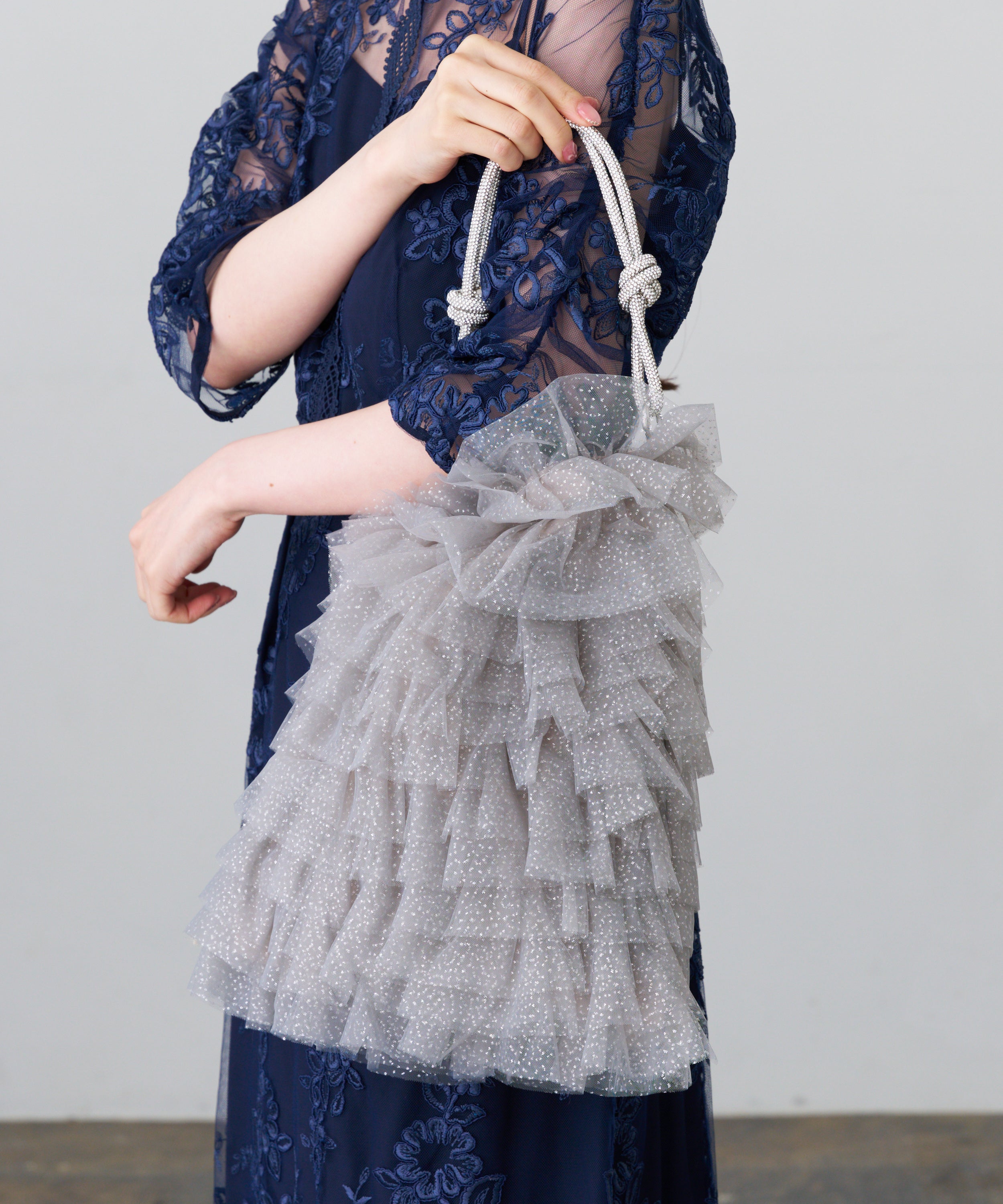 ラメチュールフリルトートバッグ