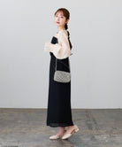 フォーマル×カジュアルのラインストーンスクエアバッグ